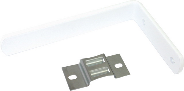 Кронштейн предназначен для стенового крепления карнизов для штор, вылет кронштейна 120 мм. Покрытие полимерное. Крепления для жалюзи – Г образные металлические планки с двумя прорезями, которые служат опорой для всей конструкции жалюзи. Особенности детали позволяют установить крепления на любой вертикальной плоскости. С помощью саморезов они крепятся по верх оконного проёма, после чего на них устанавливается карниз вертикальных жалюзи. Они изготовлены из крепкого сплава, что обеспечивает неподвижную фиксацию карниза.
