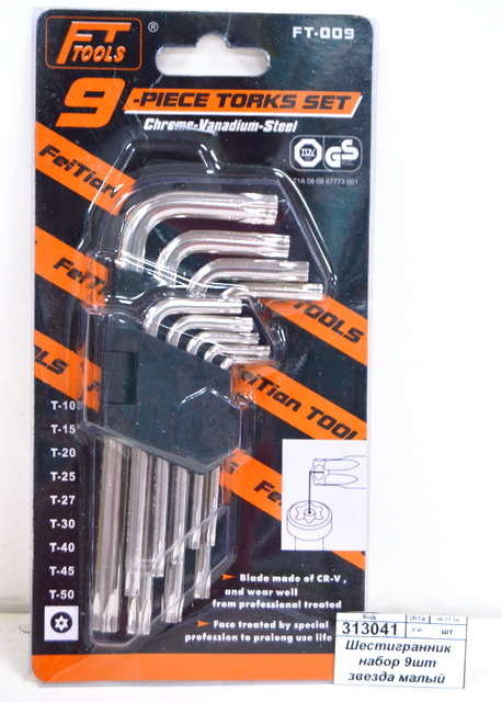 Набор ключей-шестигранников предназначен для работы с крепежом, оснащенным внутренним шестигранным гнездом в виде звездочки. Инструменты изготовлены из хромо-ванадиевой стали. Длина ключей позволяет работать в труднодоступных местах.