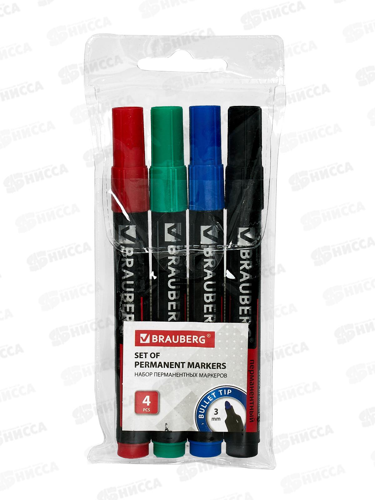 Маркеры BRAUBERG 4 штуки Contract 3мм, круглые, нестираемые 150474*24