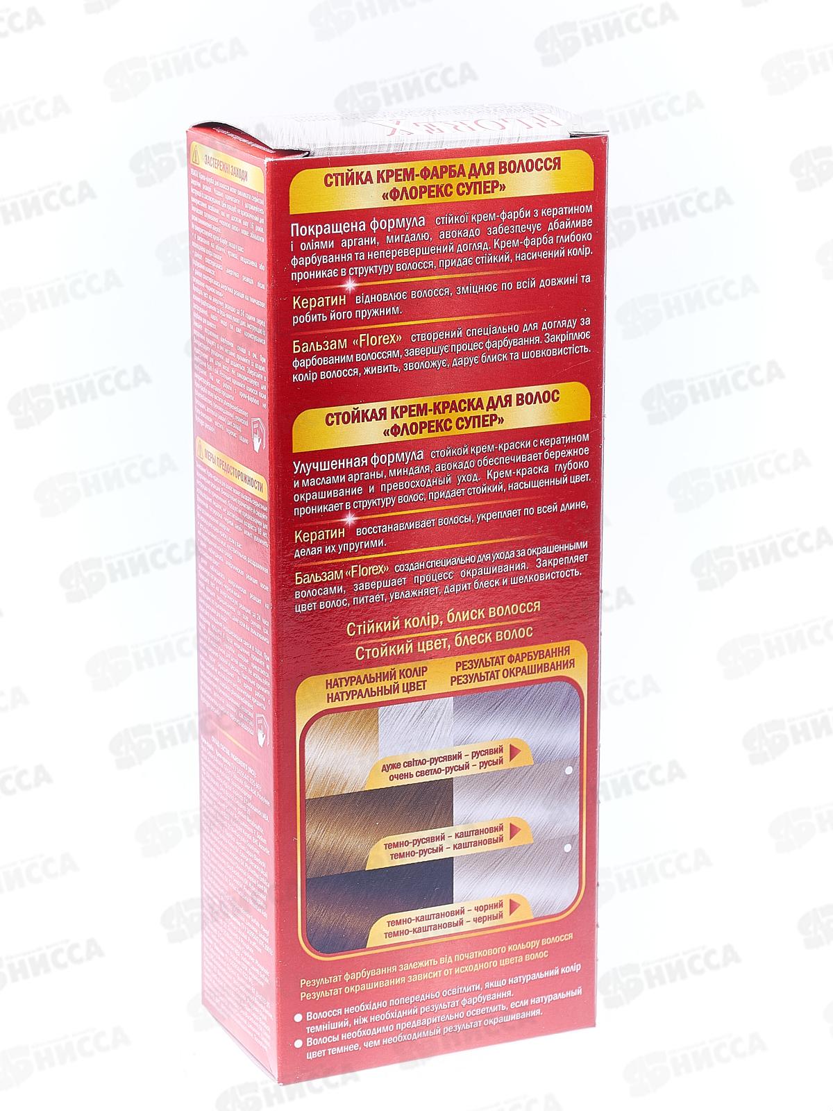 Стойкая крем-краска для волос Florex Super поможет получить желаемый цвет и ослепительный блеск локонов в домашних условиях. Формула краски содержит кератин, питательные масла миндаля, аргании и авокадо, богатые полезными микроэлементами. Активные вещества бережно ухаживают и укрепляют волосы от корней до кончиков. Бальзам Florex, идущий в комплекте, разработан для закрепления результата окрашивания. В его основе питательные и богатые витаминами натуральные экстракты льна, облепихи и репейника. Растительные компоненты ухаживают за волосами, увлажняя их, придают зеркальную гладкость, блеск и шелковистость. Красящие пигменты не повреждают корни и структуру волос, дарят равномерный, стойкий и насыщенный оттенок. Специальная формула полностью закрашивает седину. Краска Florex Super это длительный эффект и непревзойденный результат!