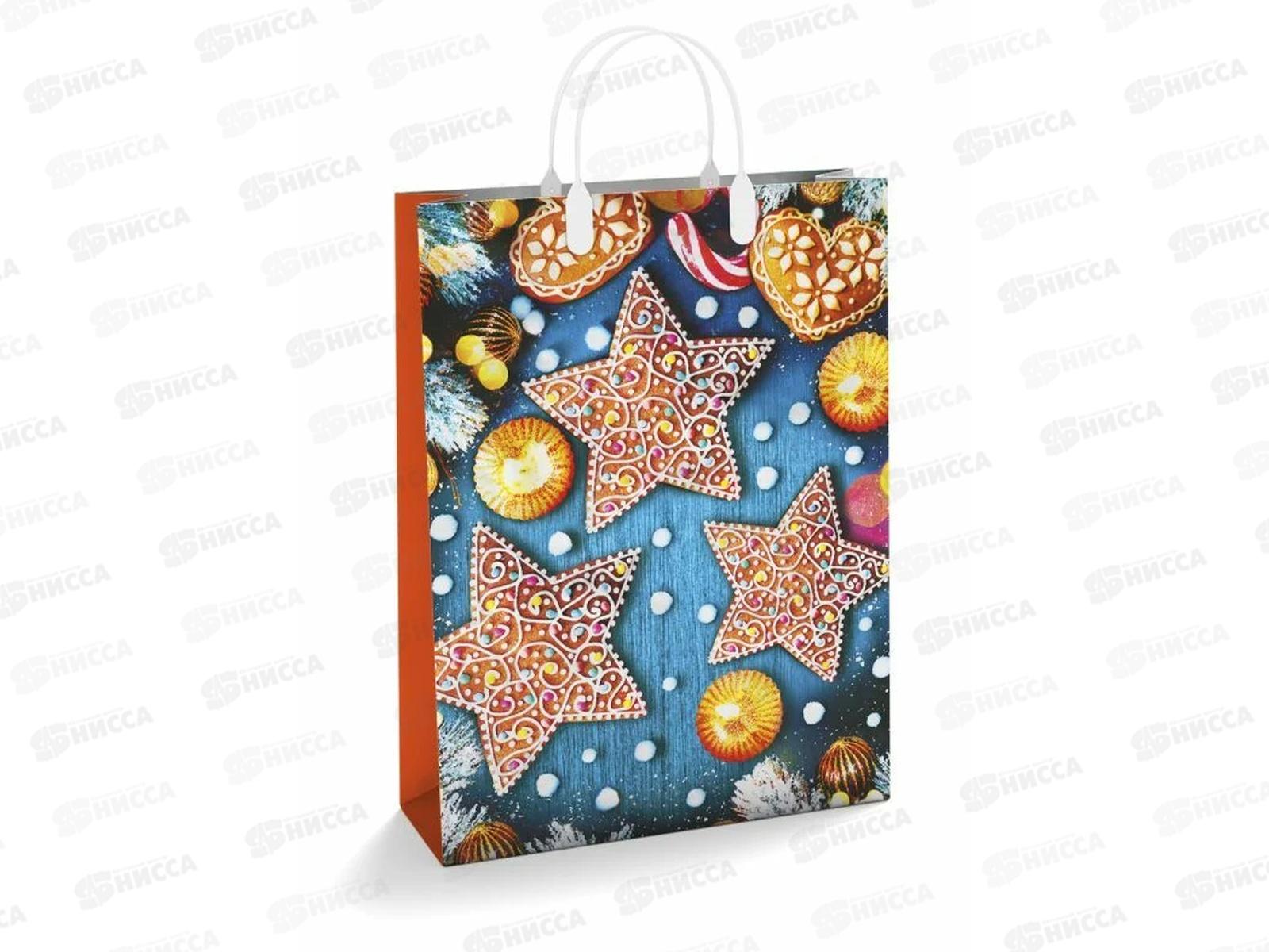 Сумочка пластиковая мягкий Новый Год 30*40 Пряничные звезды *40