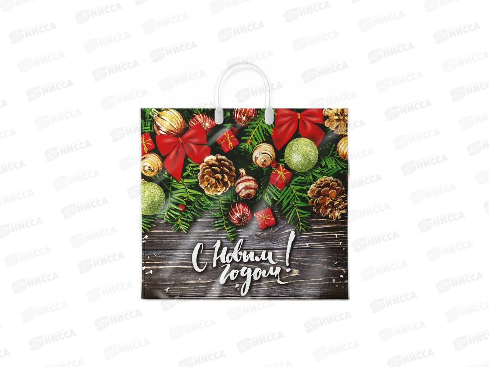 Пакет с пластиковой ручкой Новый Год 38*35 Рождественские бантики *10/100
