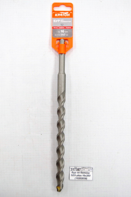 Бур Кратон с системой крепления SDS+ характеризуется легким и быстрым типом фиксации оснастки на инструменте. Оснастка изготавливается из материала повышенной твердости, что позволяет использовать изделие более длительный срок. С помощью бура можно делать отверстия в стенах из искусственного и натурального камня, железобетона, бетона, кирпича. Готовые отверстия пригодны для монтажа анкеров и дюбелей с большим диаметром 16 мм. Отверстия могут иметь максимальную глубину 20 см.