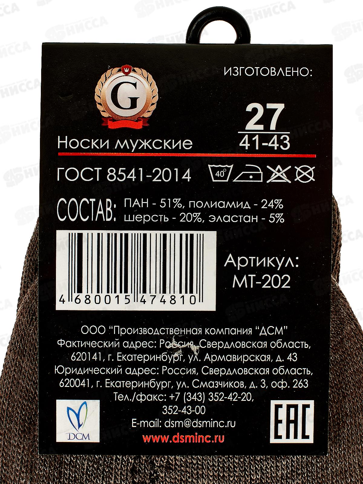 Носки мужские МТ-202 GRAND LINE шерсть коричневый р-27