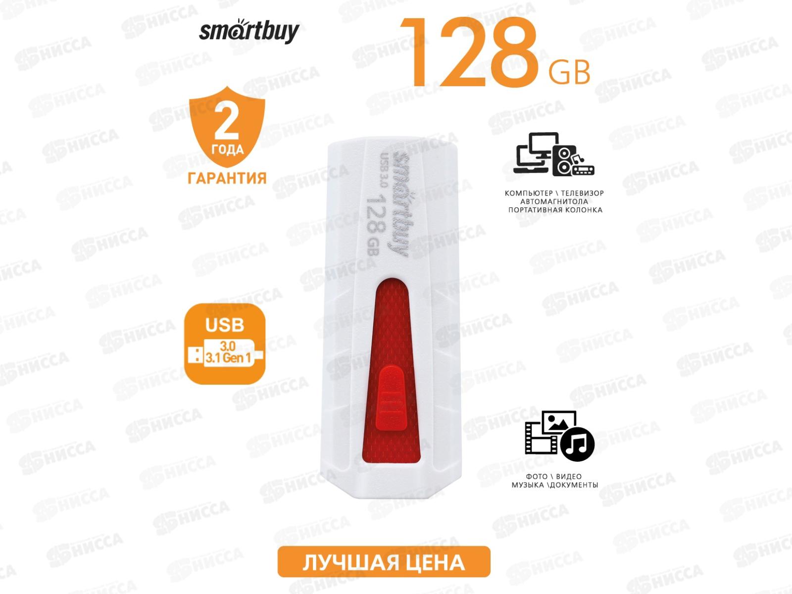 Флеш-карта USB 3.0 SmartBuy 128Gb IRON White/Red