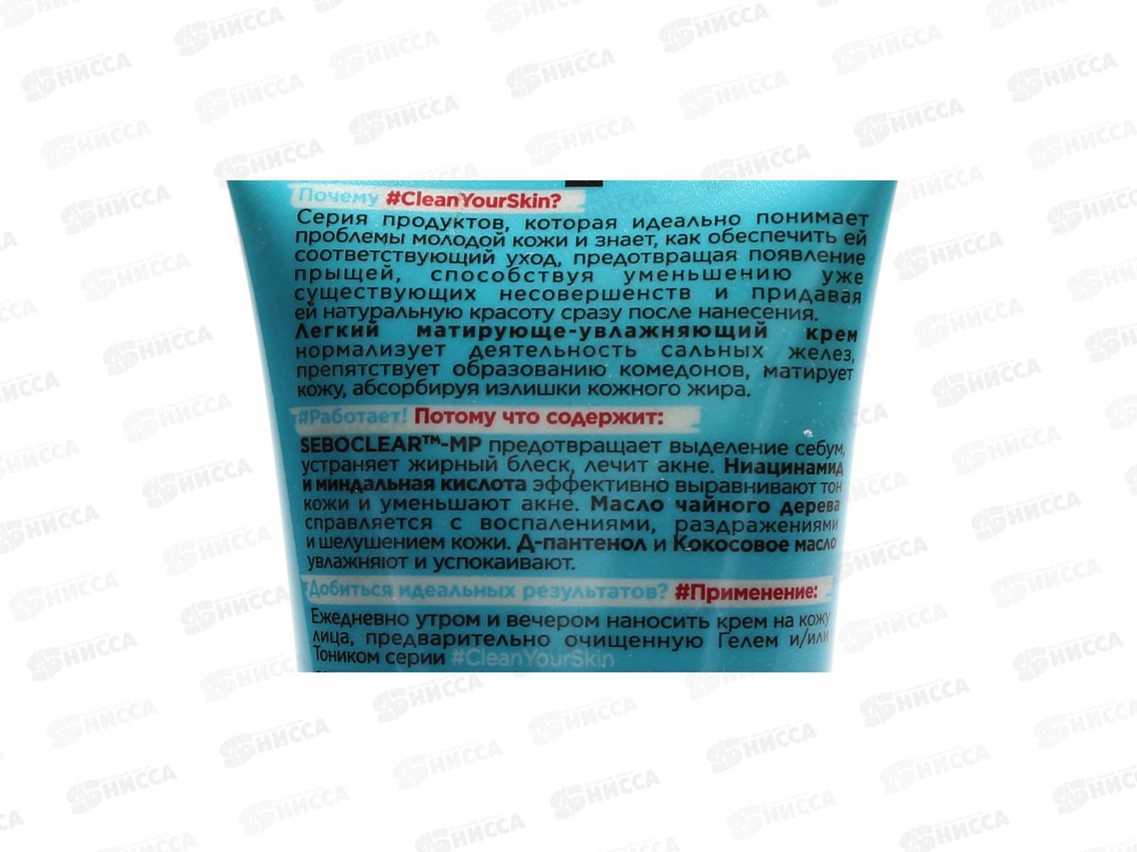 ЭВЕЛИН CLEAN YOUR SKIN матирующий -увлвжняющий крем для лица 75мл