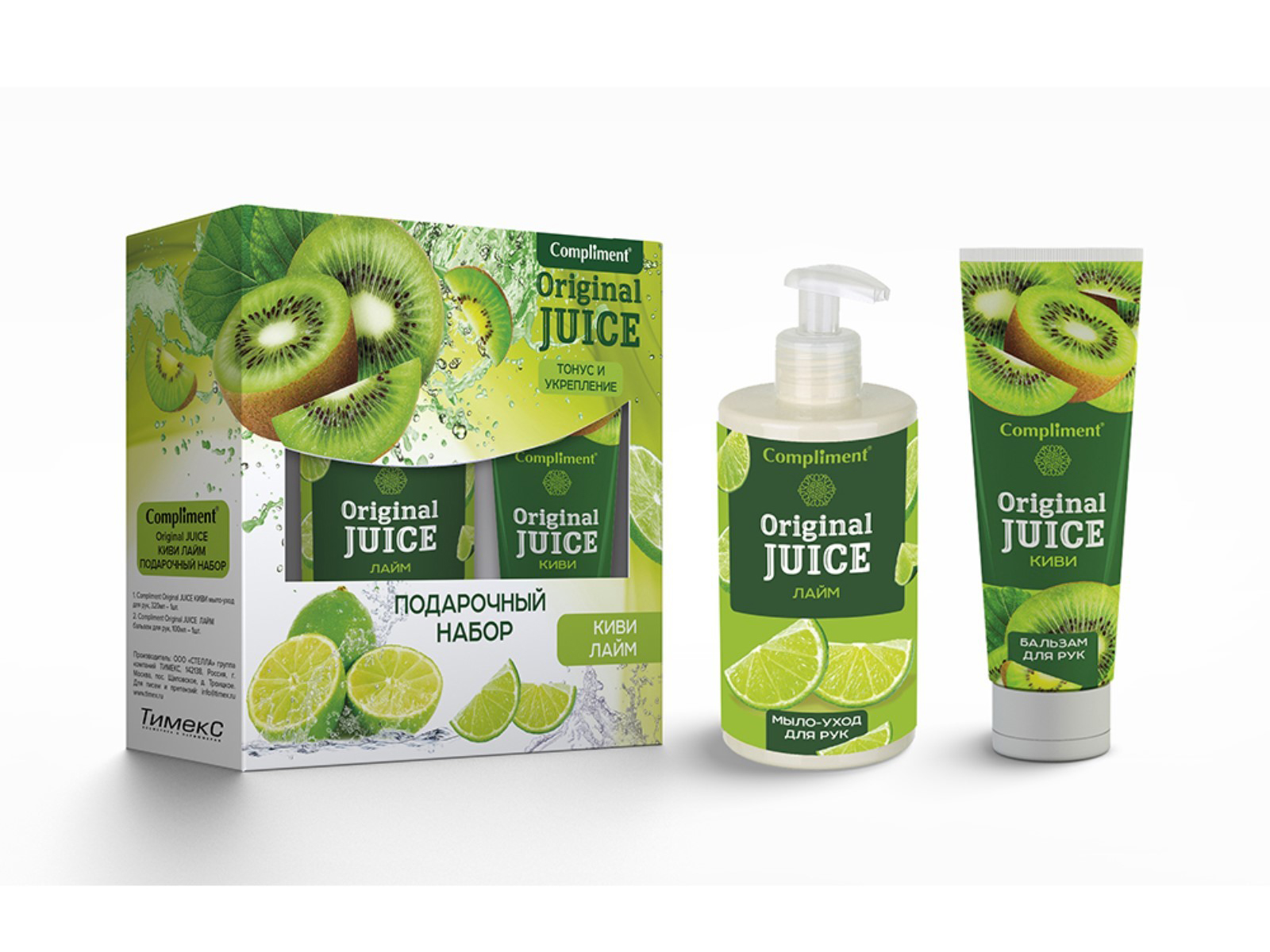 КОМПЛИМЕНТ Подарочный Набор №1490 Киви-Лайт (мыло для рук+бальзам для рук) *8
