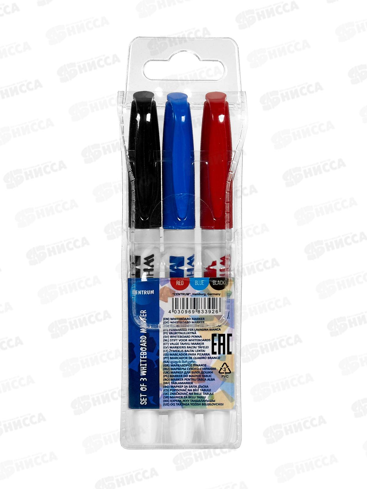 Набор Centrum из 3-х маркеров для белой доски. Удобные и практичные маркеры сухого стирания от Centrum, предназначены для письма на магнитно – маркерных белых досках. Чернила не имеют резкого запаха, быстро высыхают на поверхности, не оставляя разводов. С легкостью удаляются при помощи специальных губок или любой сухой тряпки. Маркеры представлены в круглом пластиковом корпусе. Цвет чернил - черный, синий, красный.