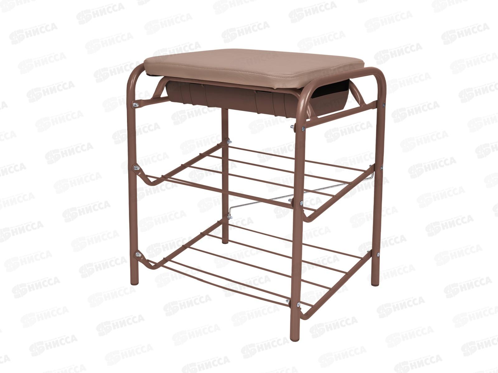 Напольная подставка для обуви с 2-мя полками для размещения обуви и встроенным ящиком в сиденье для хранения принадлежностей по уходу за обувью. Банкетка имеет усиленный металлический каркас и разборную конструкцию. Материал сиденья прочный, устойчивый к истиранию и легкий в чистке. Покрытие каркаса банкетки устойчиво к механическим воздействиям. Материал: каркас - стальная труба с порошковым антикоррозийным покрытием, сиденье - винилискожа, колпачки на ножках - пластик. Допустимая нагрузка не более 100кг.