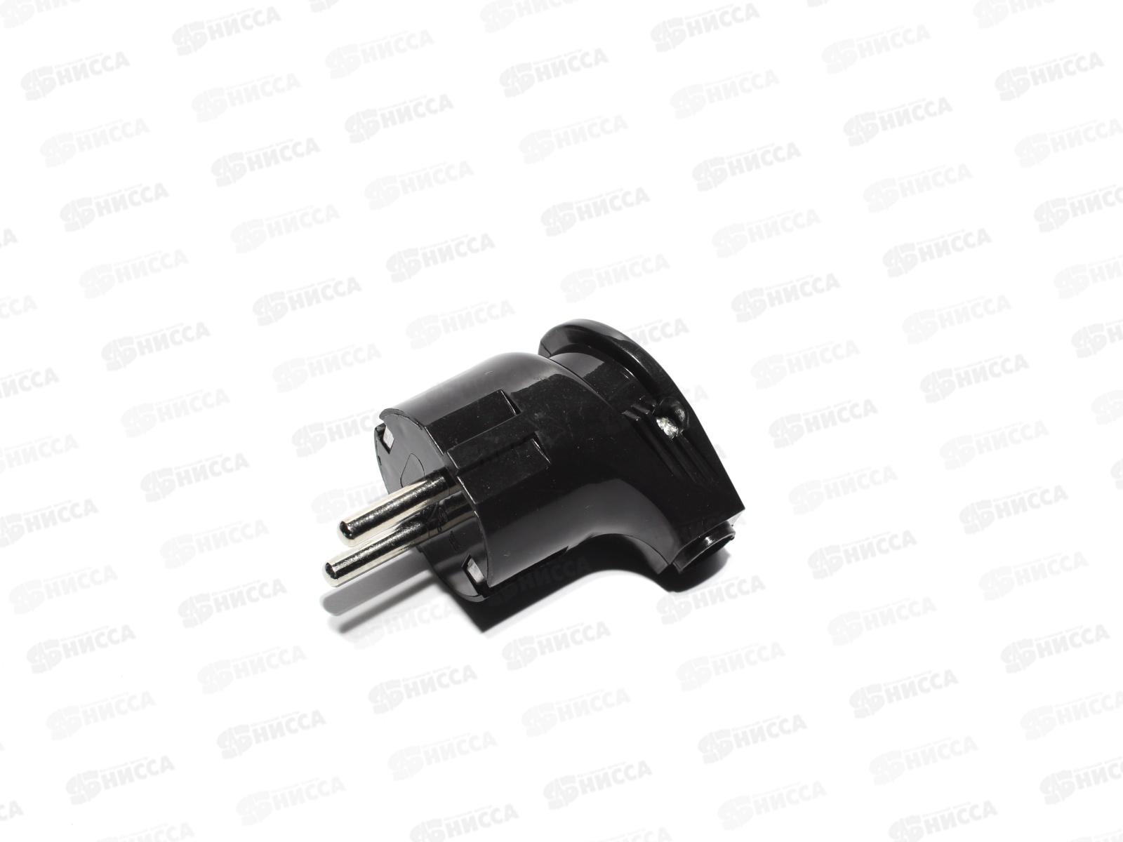 Вилка штепсельная ПРОГРЕСС косая, с заземлением, черная *30/300