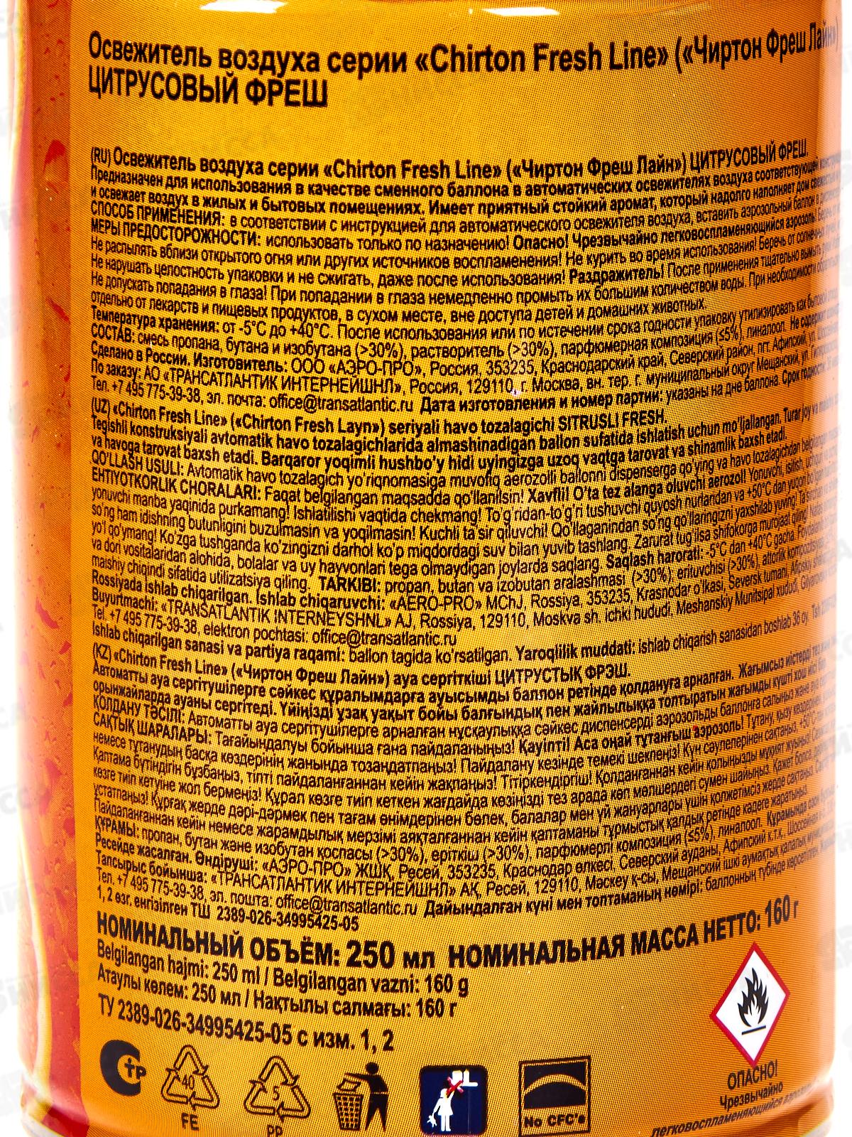 Чиртон освежитель Фреш Лайн Цитрусовый фреш з/б 250мл *6