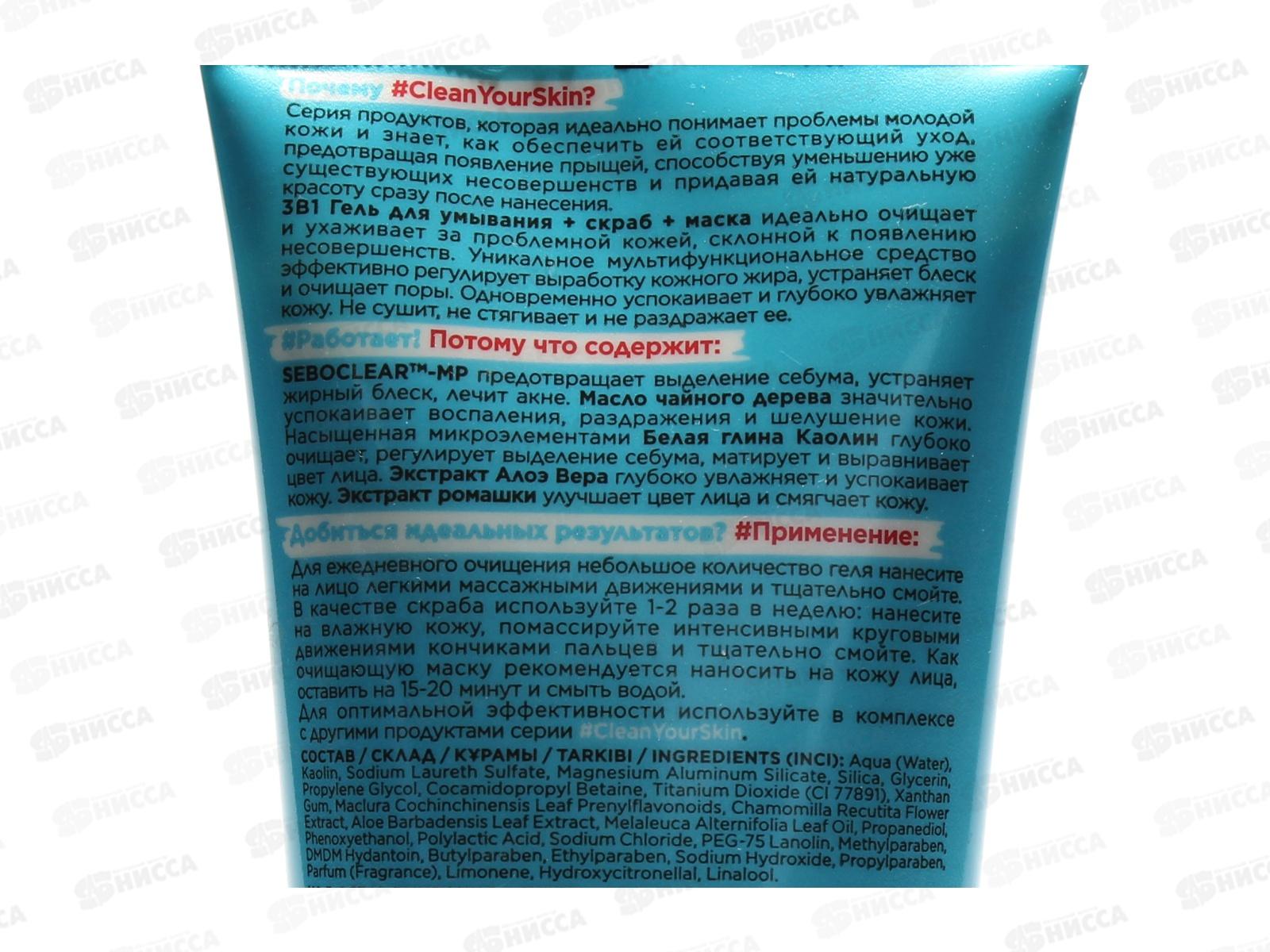 ЭВЕЛИН CLEAN YOUR SKIN Гель для умывания+скраб+маска 3в1 200мл