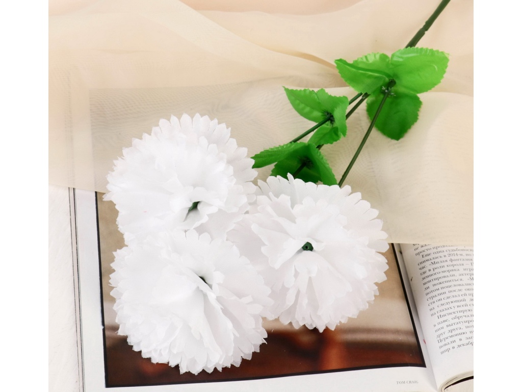 Цветы искусственные 58см Гвоздика трио белый 4560209 *10