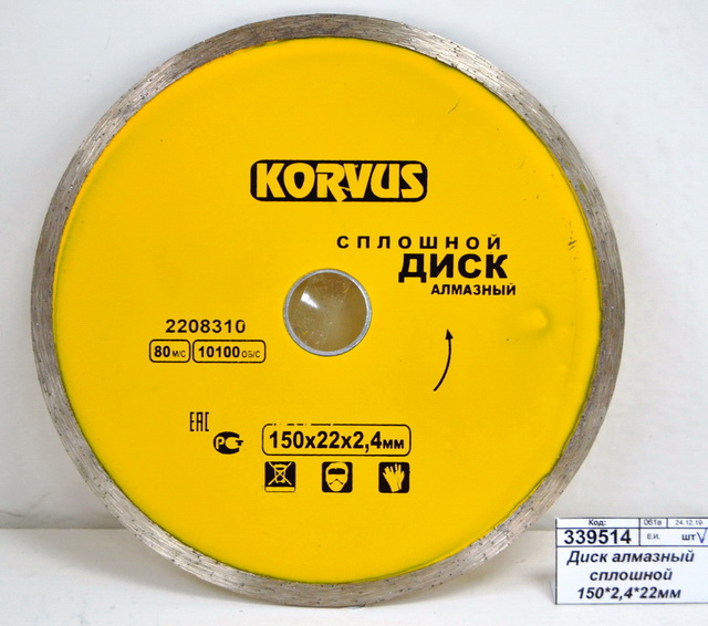 Диск алмазный сплошной 150*2,4*22мм 2208310