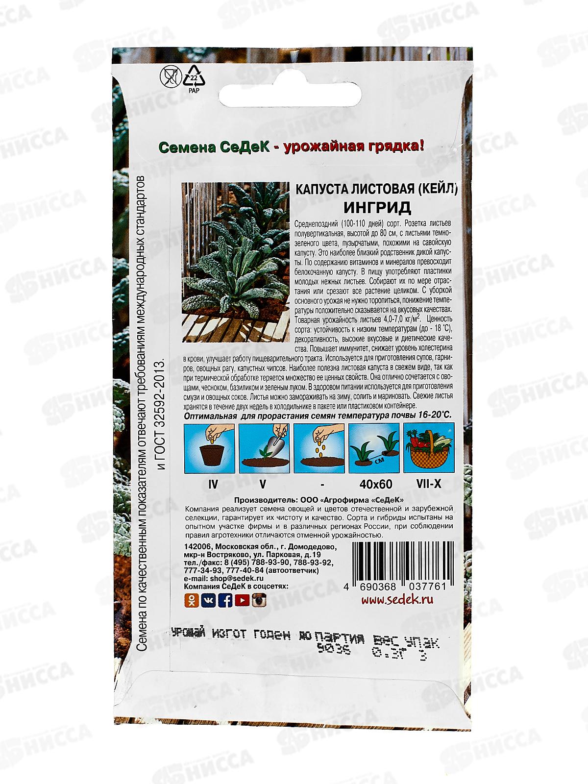 Капуста Ингрид (лист) (Евро, 0,3) СеДек *10 СРОК ДО 12.24