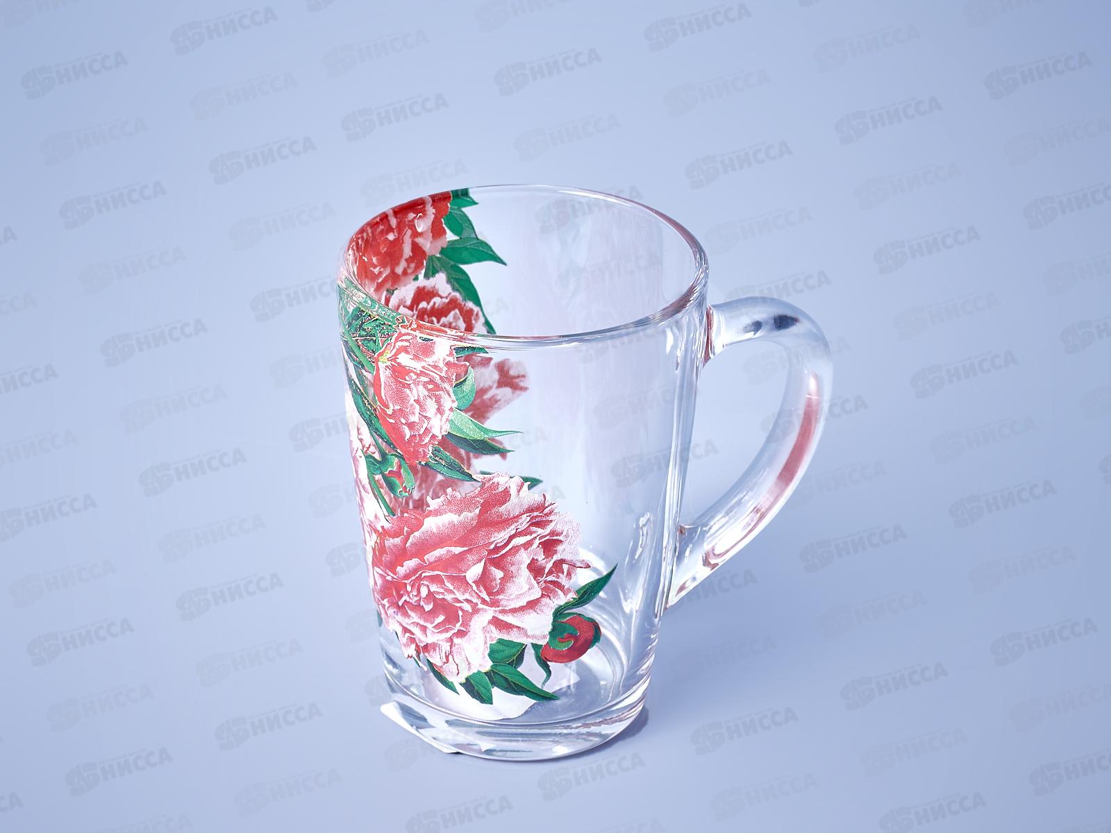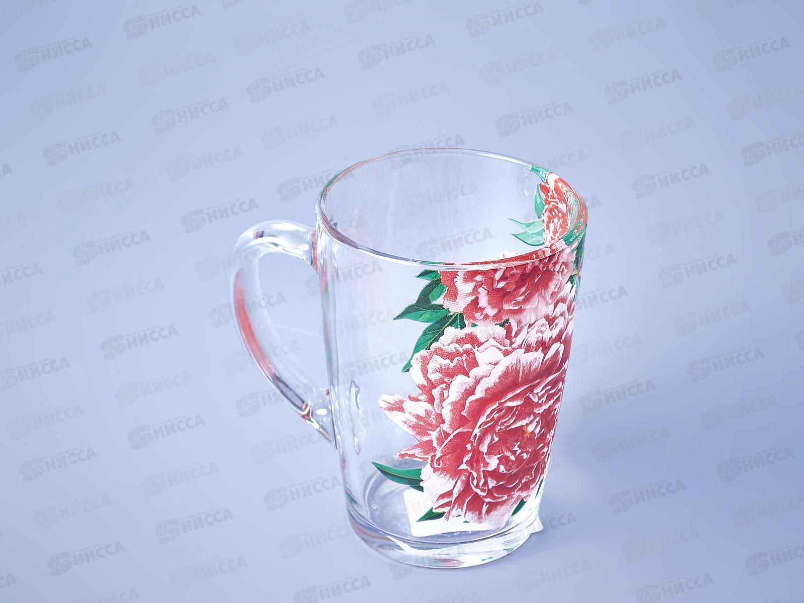 Удобная, кружка из прозрачного стекла. Приятная форма, удобная ручка. Яркий и сочный декор -"Пионы". Декор нанесён высокотемпературной деколью, приспособленной для использования в посудомоечной машине. Не большой объём кружки может характеризовать её как детскую, такая кружка станет хорошим дополнением на кухне в доме, на даче,в офисе.