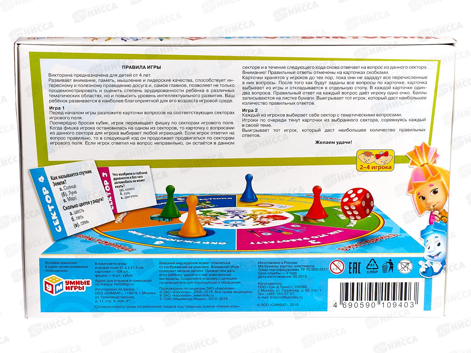 Викторина 09403 "УМКА" 100 вопросов Фиксики в коробке *20