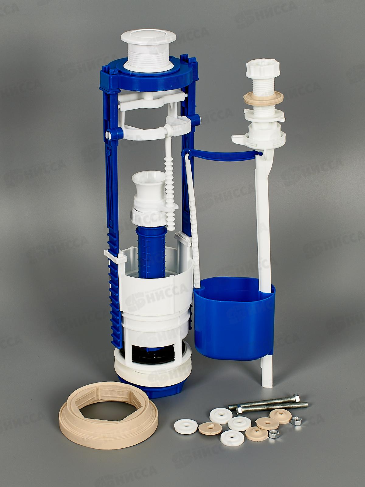 Арматура АС-17.1 кнопочная с клапаном нижней подводки воды АН-01. Данная арматура качественно отличается от штоковых арматур, при этом она включает в себя лучшие их качества. Арматура универсальная: устанавливается и в "средние" бачки (высота до крышки бачка от 310 мм до 390 мм), и "высокие" (высота до крышки бачка 420 мм).