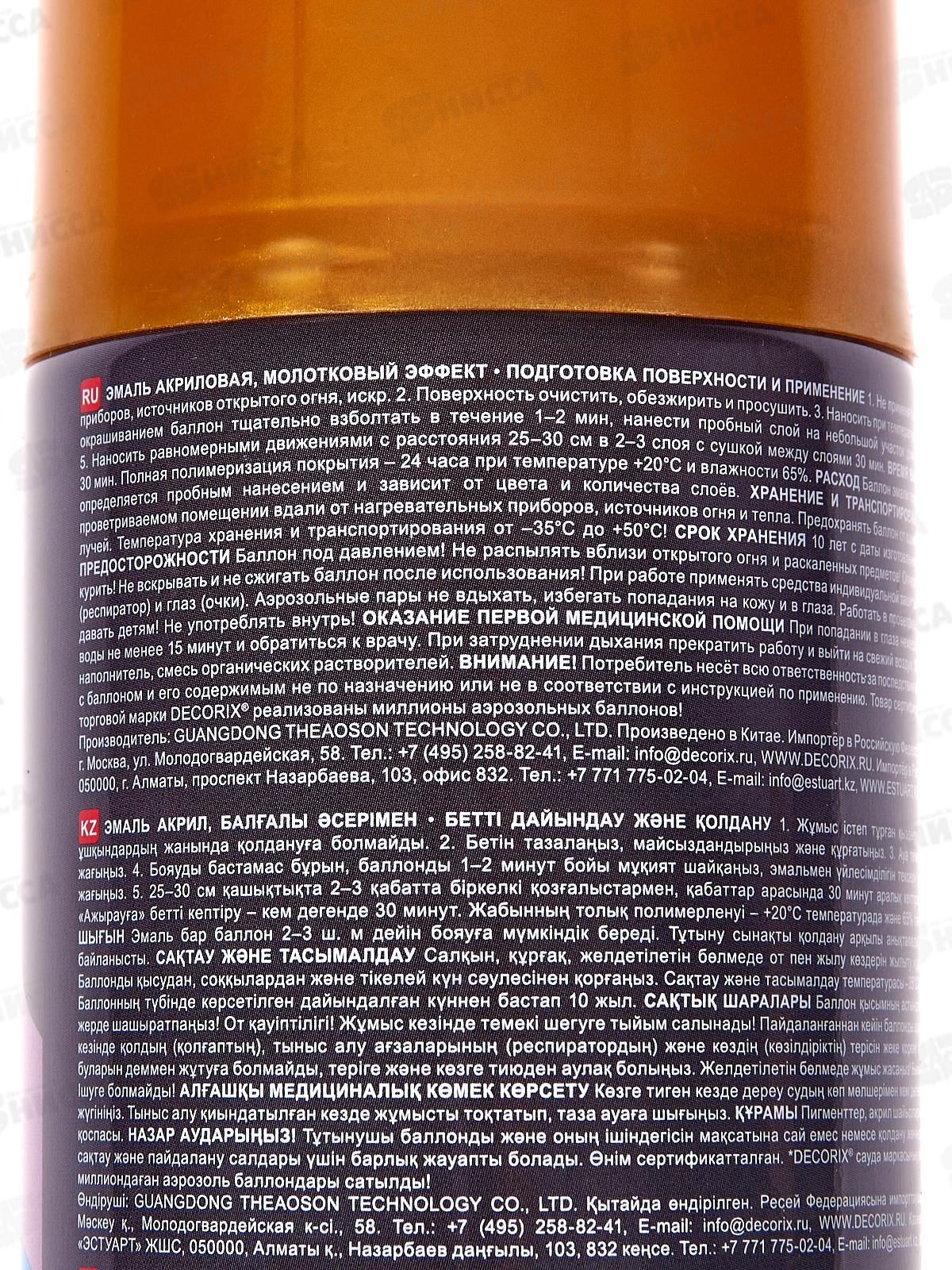 Эмаль DECORIX аэрозольная 520мл, молотковый эффект, золото *12