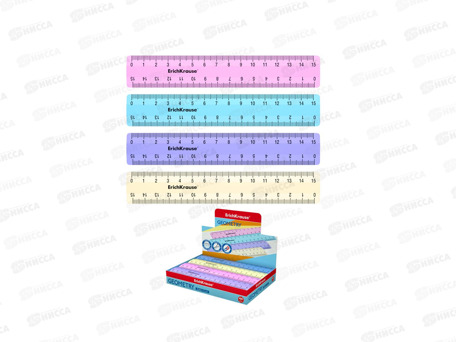 Линейка 15см EK пластиковая, Pastel, 4цвета, ассортимент 49541*44