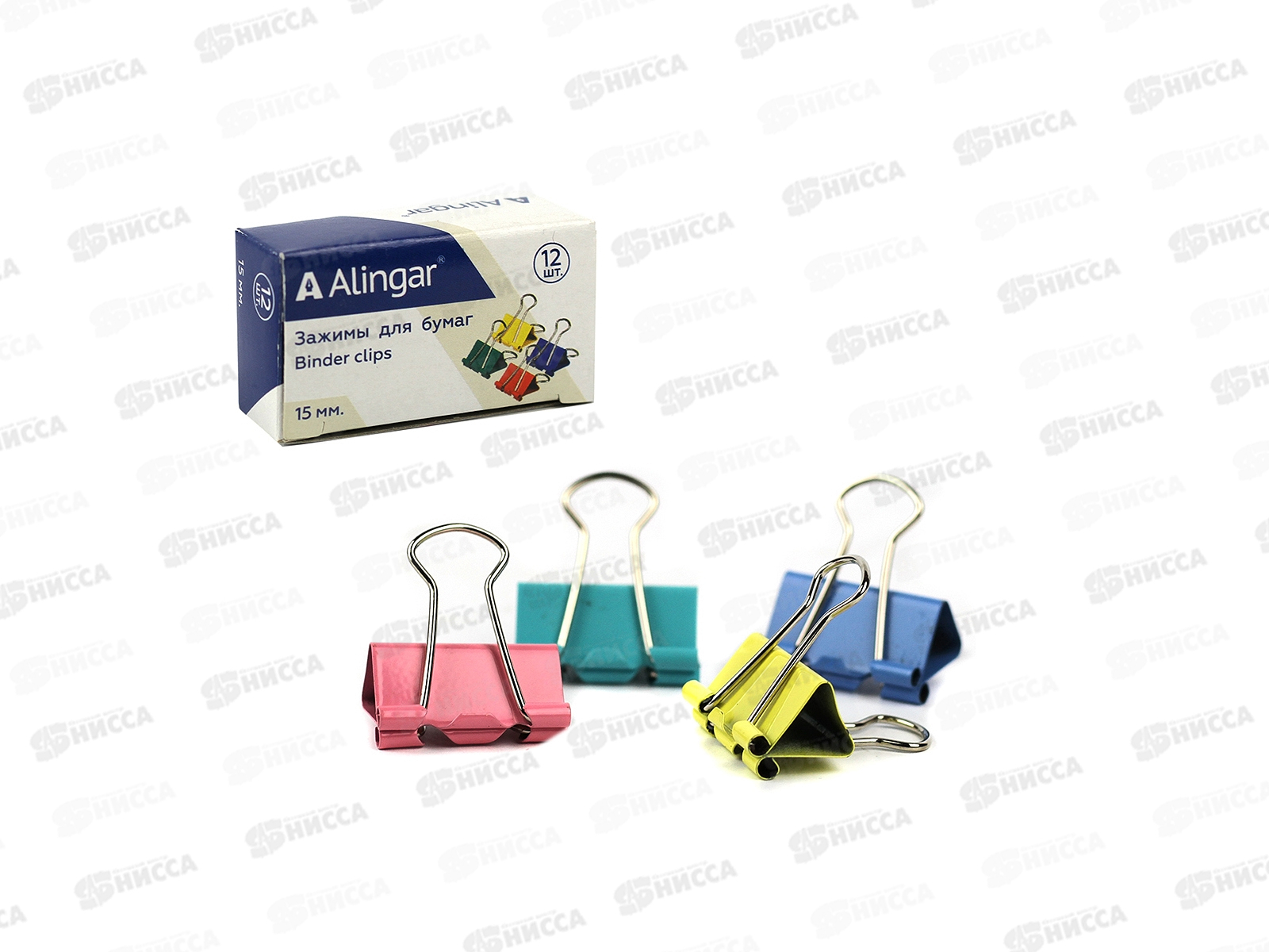 Зажим для бумаг 15мм 12шт Alingar, цветной, AL6777 *12