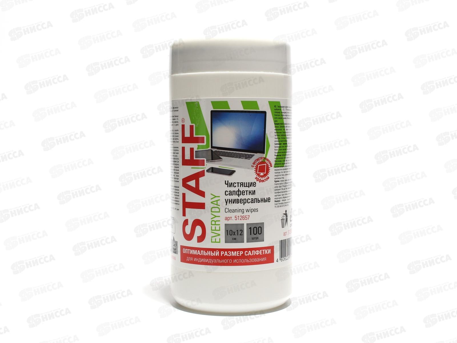 Чистящая салфетка для экрана STAFF универсальная,туба 100шт.,512657