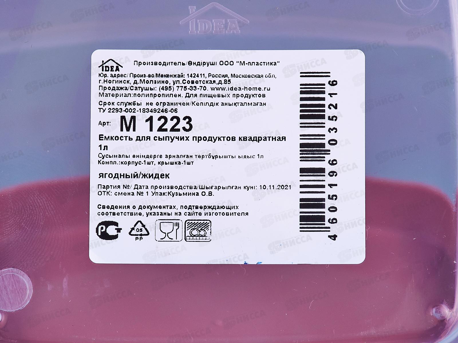 Емкость для сыпучих продуктов 1л Ягодный квадратный М1223 *18