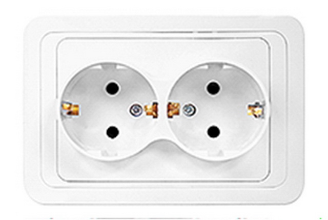 Розетка скрытой установки 2-х местная Прогресс с заземление белая *10/200