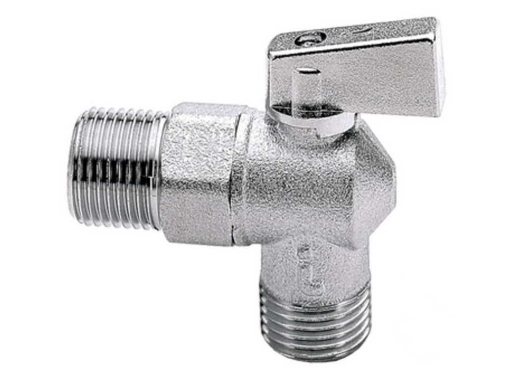 Кран шаровой угловой для СМ с отражением, хром. MM 1/2x3/4 штуцер-штуцер ручка-флажок: хром, Aqualink, 01331 *10/120