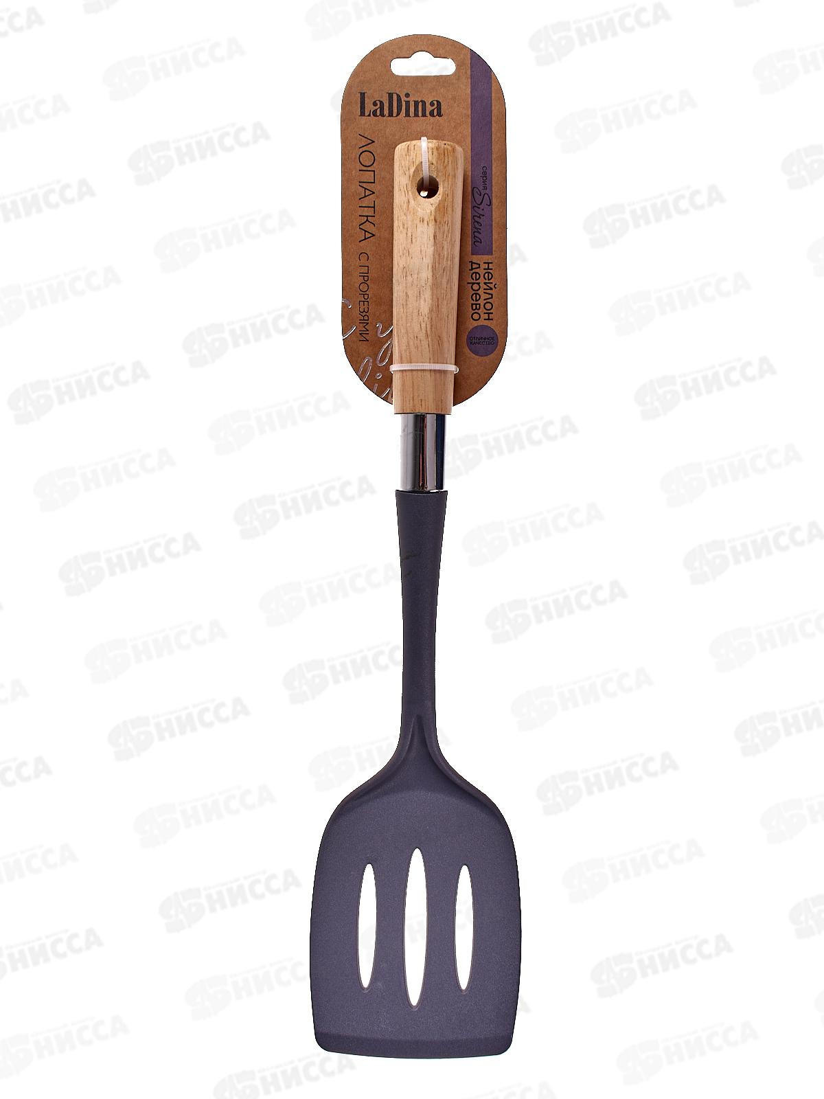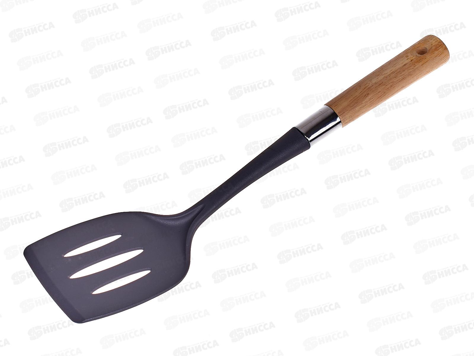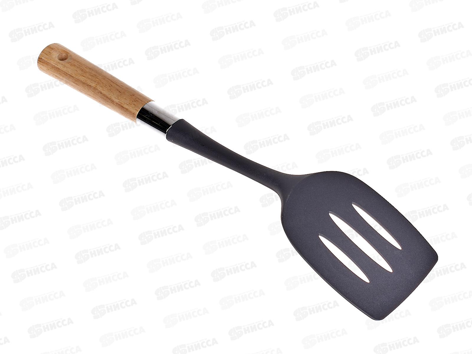 Лопатка с прорезями нейлон деревянная ручка 17302 *24/72