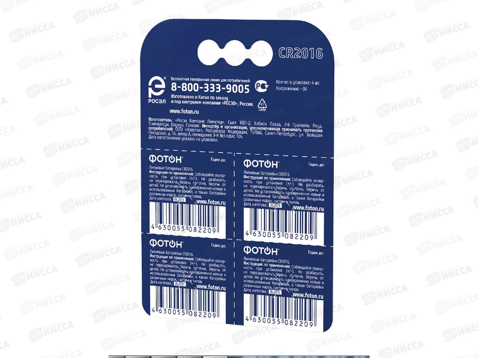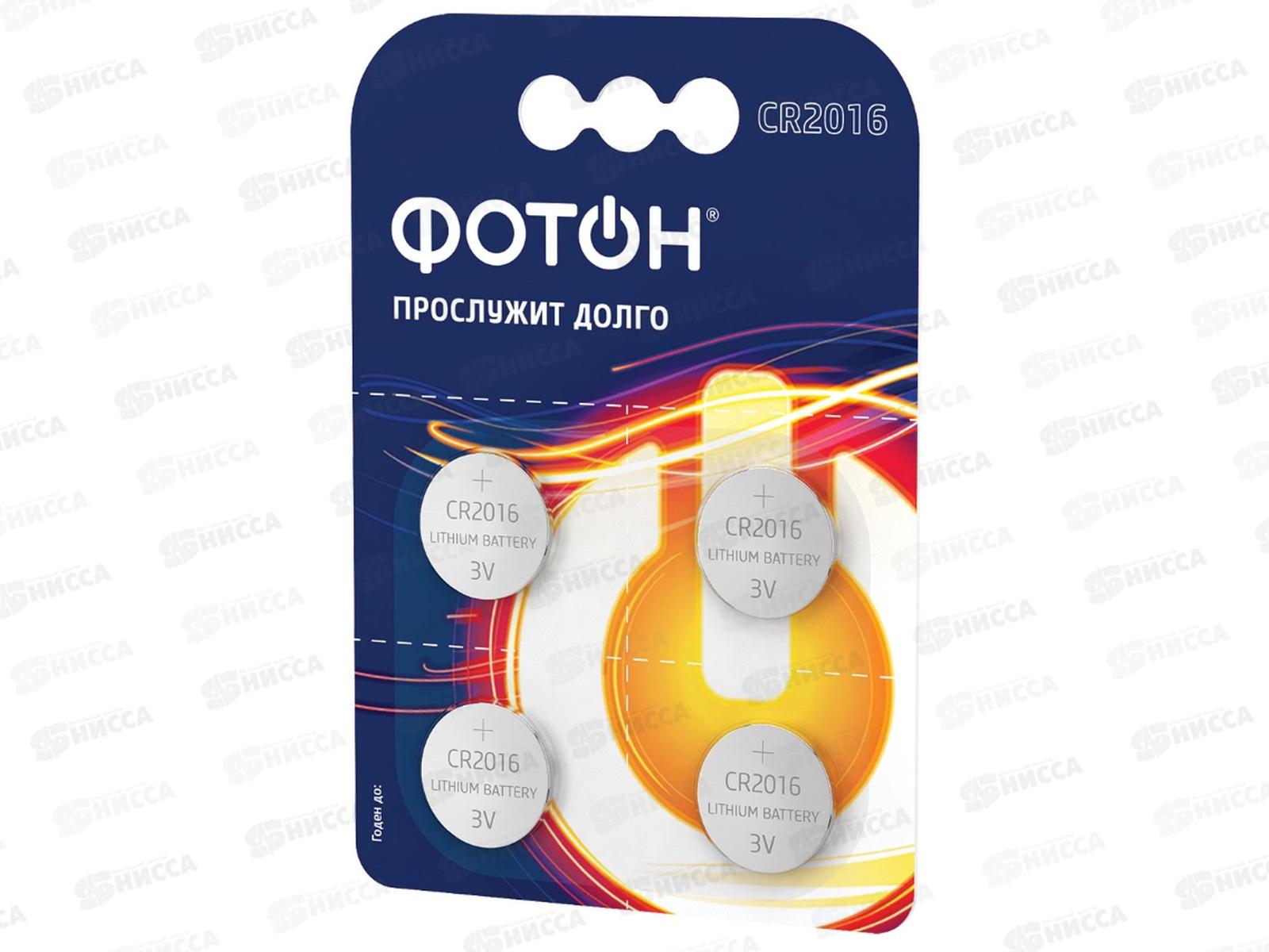 Батарейки Элемент питания ФОТОН CR2016, BP4, литиевый 3В *4/80/480