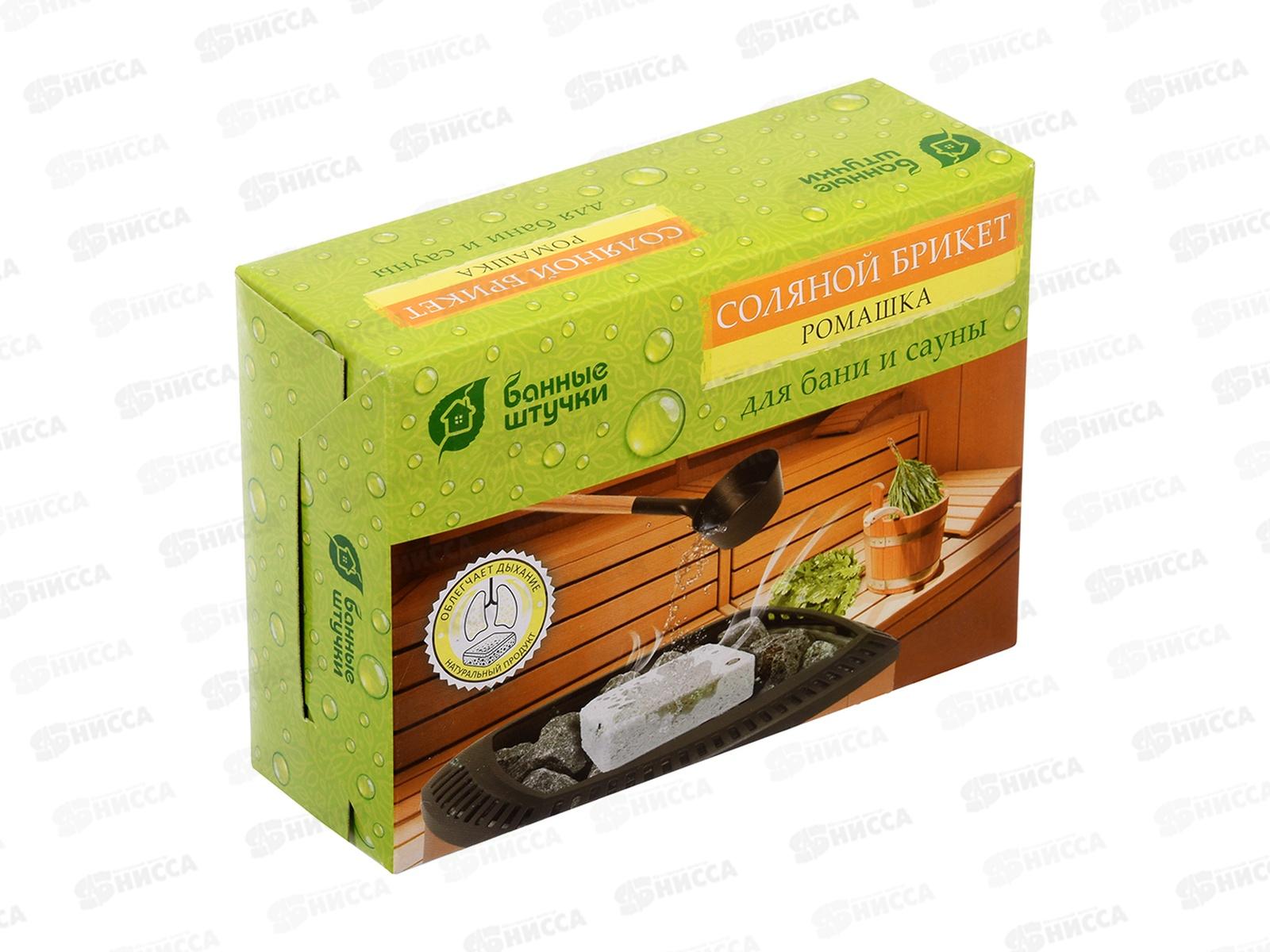Соляной брикет с травами Банные Штучки Ромашка 1300 г 32401 используется в бане или сауне. Соляные пары хорошо очищают дыхательные пути. Ромашка успокаивает, устраняет сухость и шелушение, а так же очищает поры.