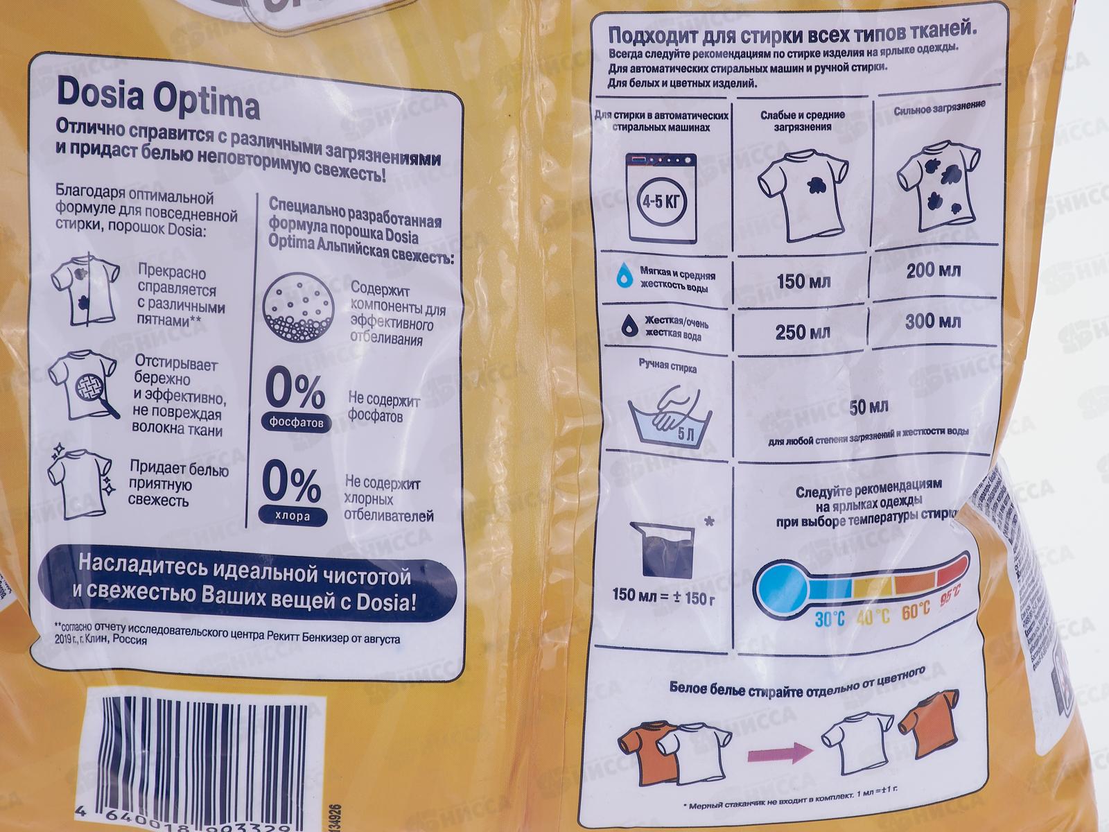 Стиральный порошок Dosia Альпийская свежесть обладает двойной системой отбеливания, которая делает ваши вежи чистыми и свежими. Специальные отбеливатели в составе сохраняют белый цвет белья. В порошке содержатся особые компоненты, которые помогают защитить стиральную машину от известкового налёта и накипи.