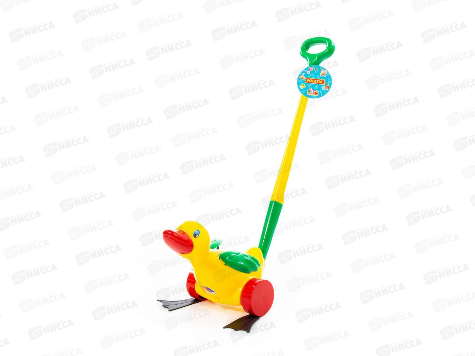 Весёлая каталка с ярким желтым утенком, который шагает лапками во время движения, вызовет массу эмоций у ребёнка и станет его любимой каталкой на долгое время.