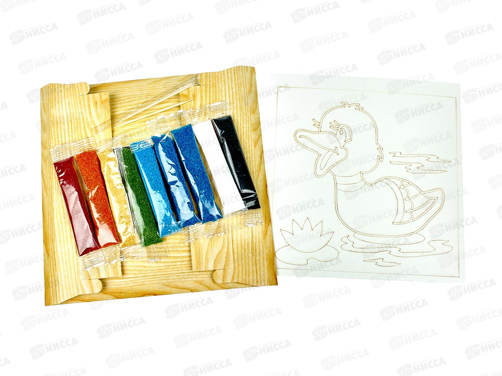 Комплектация: трафарет с клеевой основой, палочка, цветной песок, рамка