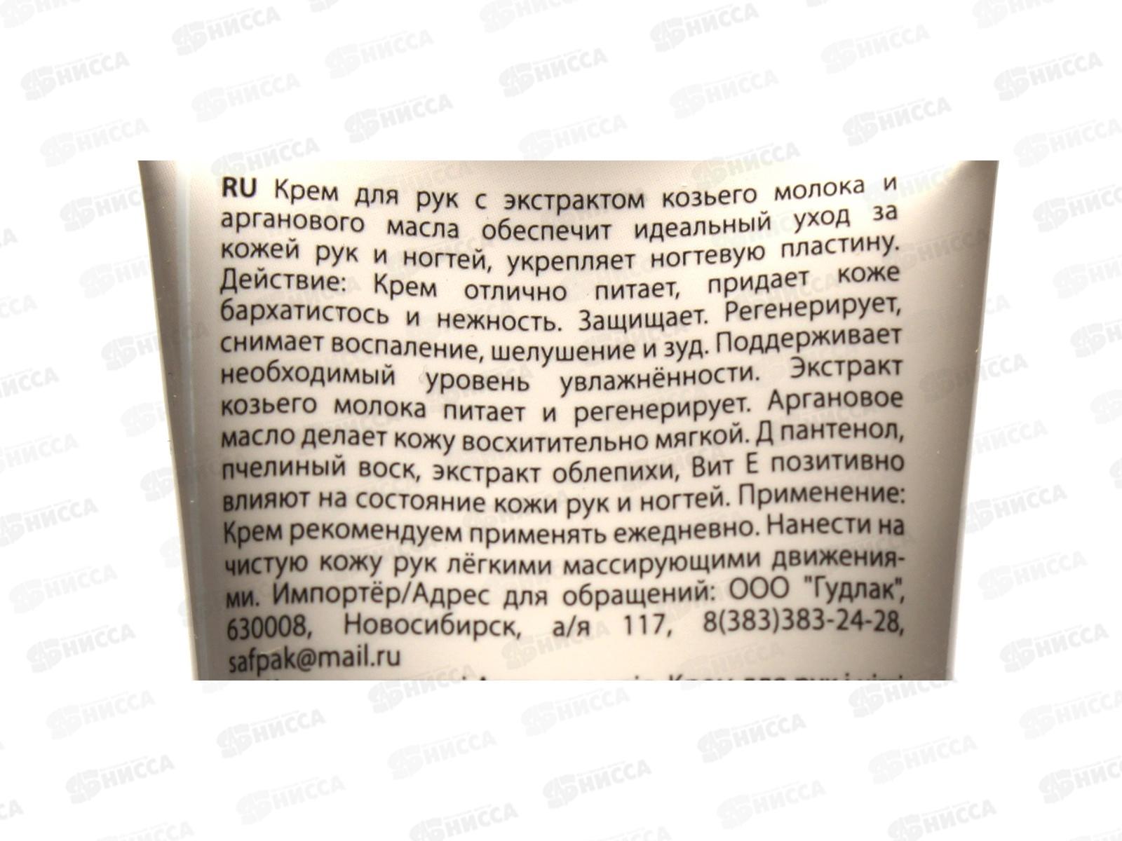 Крем содержит ингредиенты природного происхождения, которые обеспечат идеальный уход за сухой и нежной кожей рук и ногтей. В составе крема: козье молоко, аргановое масло, Д-пантенол, пчелиный воск, витамин Е. Действие крема: