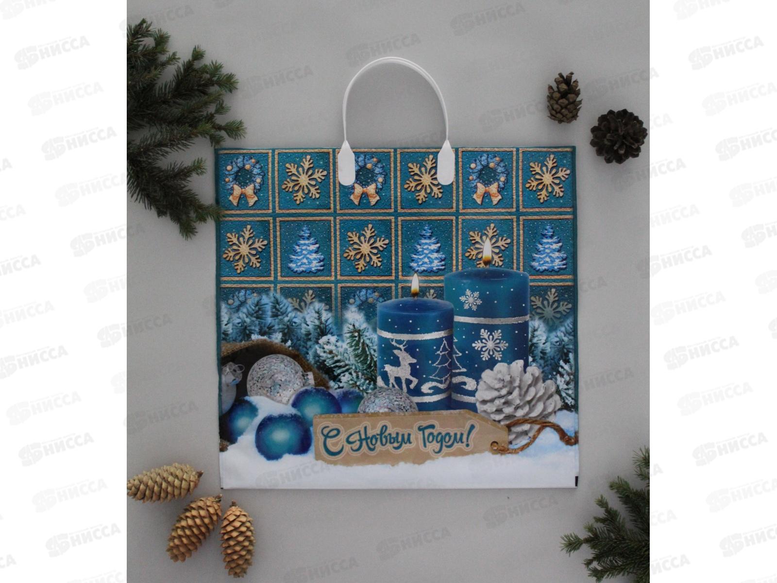 Пакет с пластиковой ручкой Новый Год 38*35 Бирюза *10/100