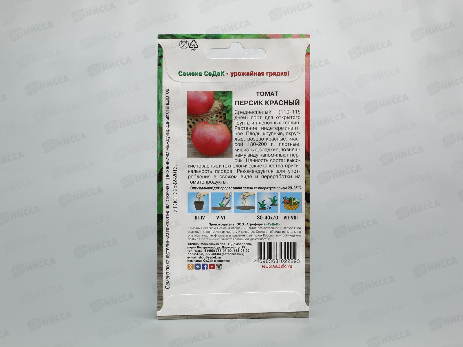 Среднеспелый (110-115 дней) сорт для открытого грунта и пленочных теплиц. Растение индетерминантное. Плоды крупные, округлые, розово-красные, массой 180-200 г, плотные, мясистые, сладкие, по внешнему виду напоминают персик. Ценность сорта: высокие товарные и технологические качества, оригинальность плодов. Рекомендуется для употребления в свежем виде и переработки на томатопродукты.