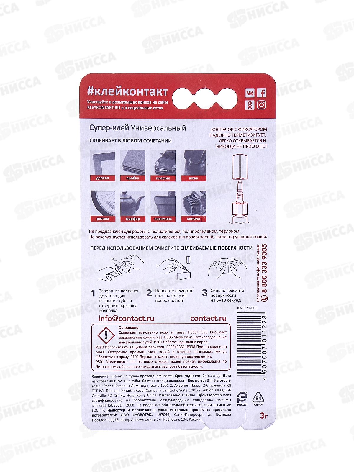Супер-клей Контакт Универсальный с уникальным колпачком-фиксатором, надежно герметизитует, легко открывается и никогда не присохнет. Супер клей склеивает в любом сочетании дерево, пробка, пластик, кожа, резина, фарфор, керамика, металл.