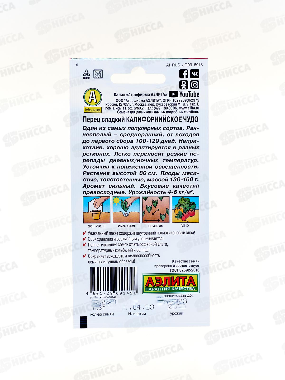 Перец сладкий Калифорнийское чудо *10 АЭЛИТА