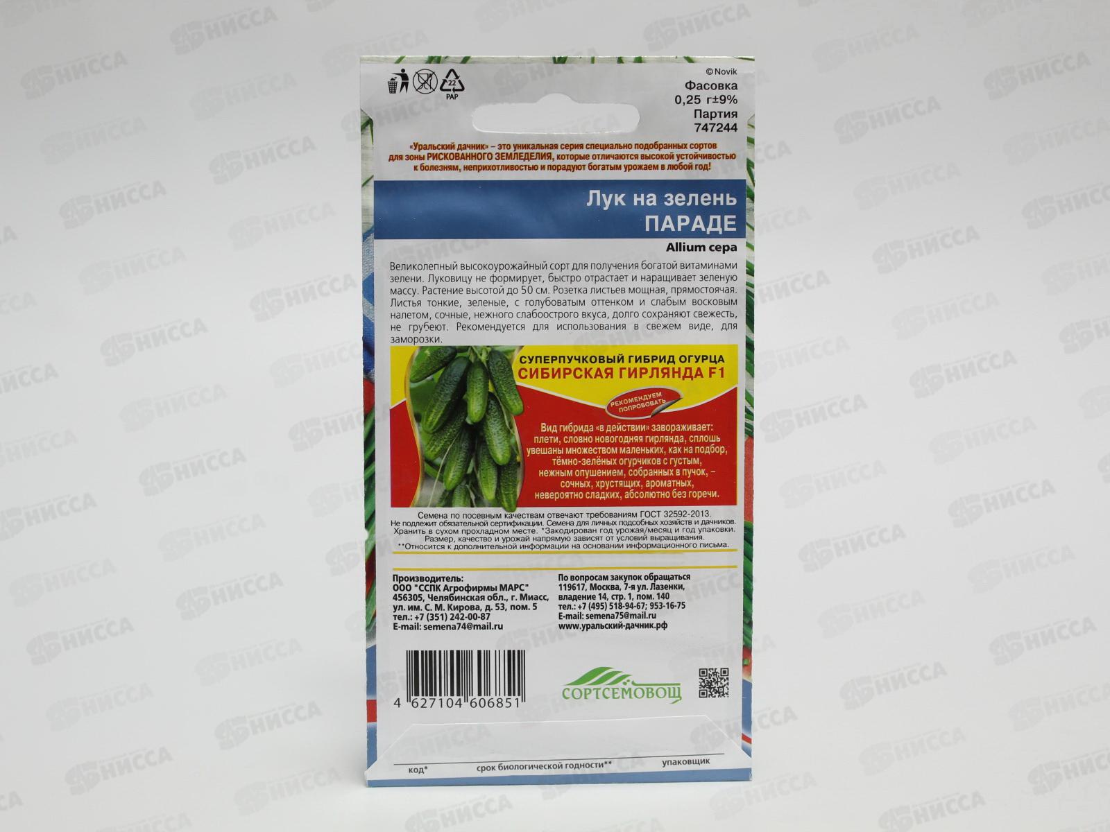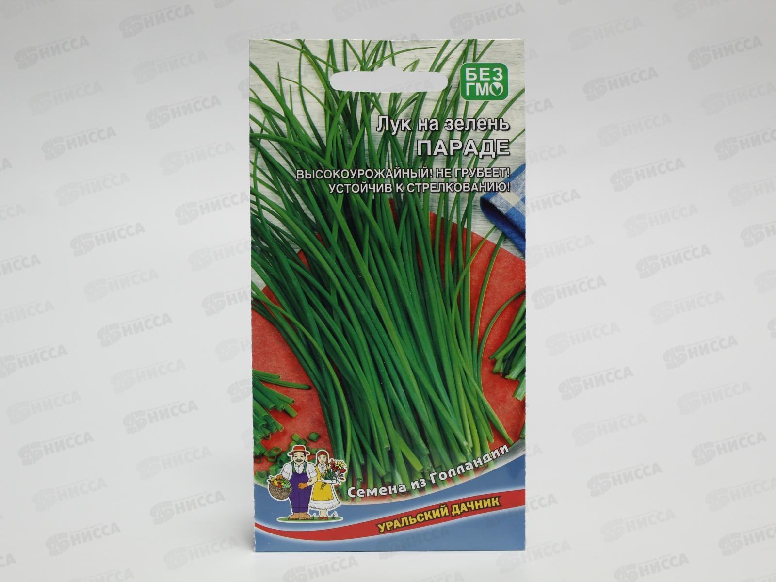 Лук на зелень Параде - великолепный высокоурожайный сорт для получения богатой витаминами зелени. Луковицу не формирует, быстро отрастает и наращивает зеленую массу. Растение высотой до 50 см. Розетка листьев мощная, прямостоячая. Листья тонкие, зеленые, с голубоватым оттенком и слабым восковым налетом, сочные, нежного слабоострого вкуса, долго сохраняют свежесть, не грубеют. Рекомендуется для использования в свежем виде, для заморозки.