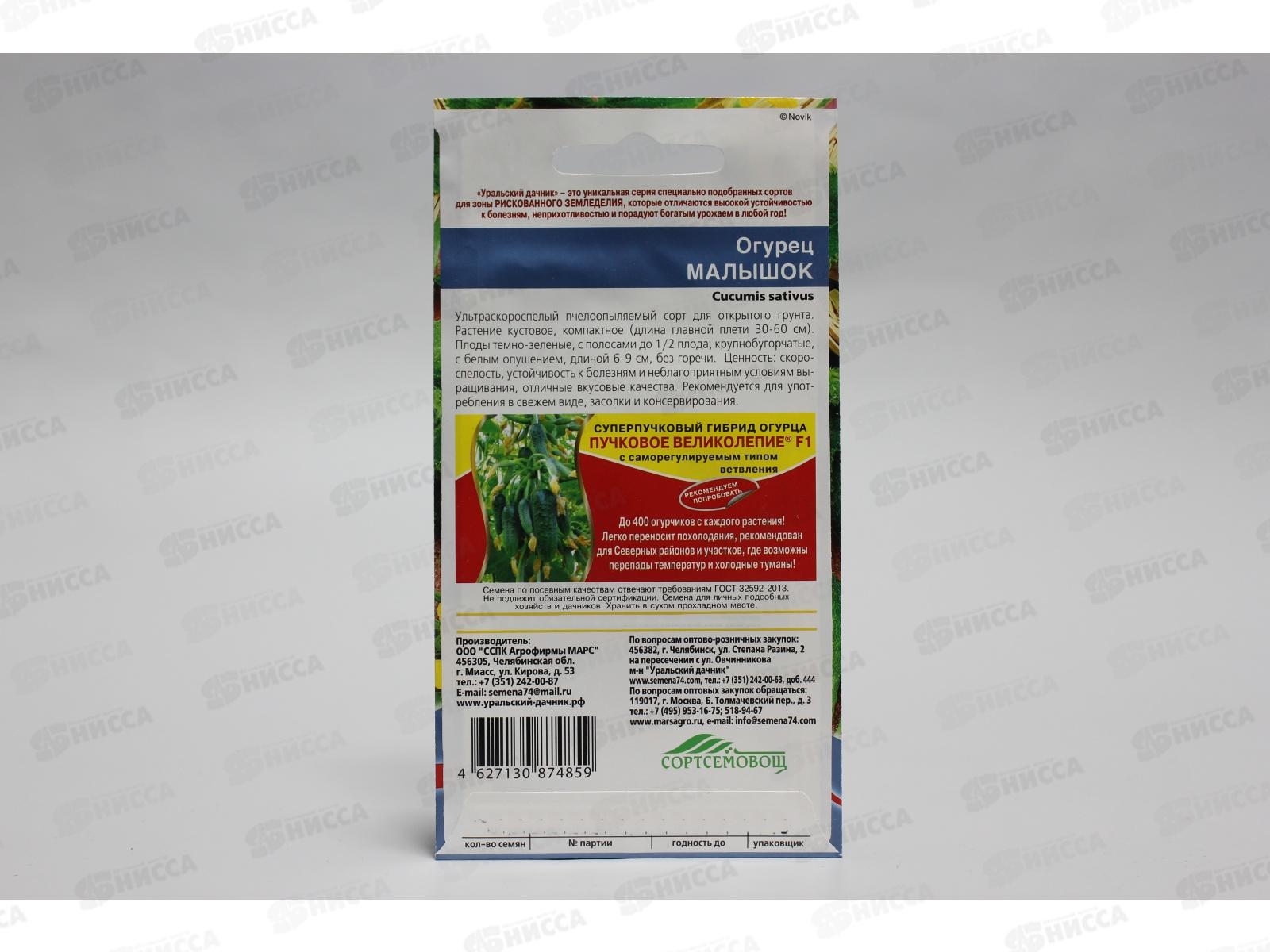 Ультраскороспелый пчёлоопыляемый сорт для открытого грунта. Растение кустовое, компактное (длина главной плети 30-60 см). Плоды тёмно-зелёные, с полосами до 1/2 плода, крупнобугорчатые, с белым опушением, длиной 6-9 см, без горечи. Ценность: скороспелость, устойчивость к болезням и неблагоприятным условиям выращивания, отличные вкусовые качества. Рекомендуется для употребления в свежем виде, засолки и консервирования.