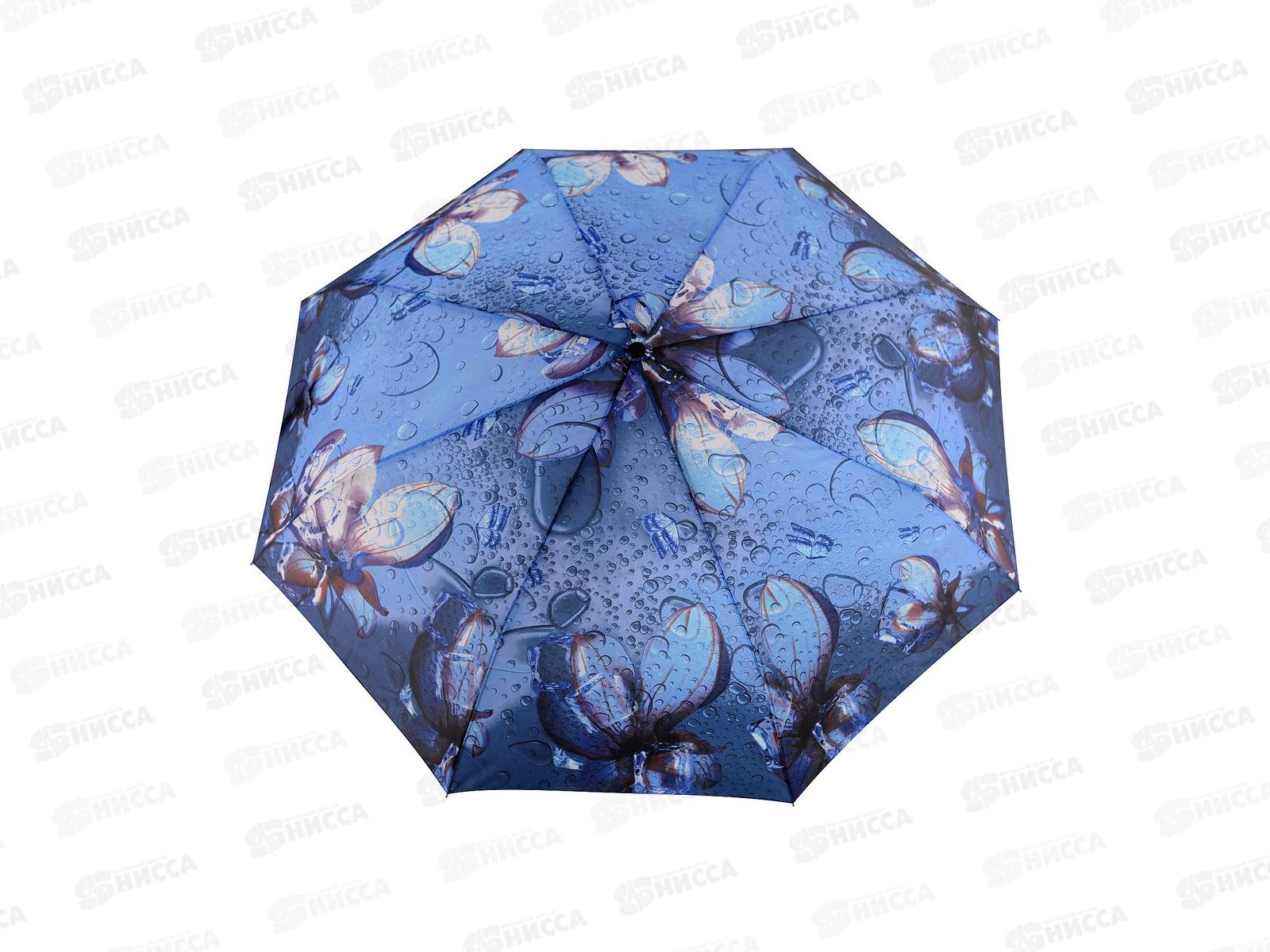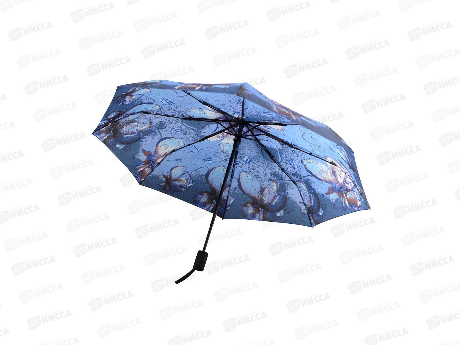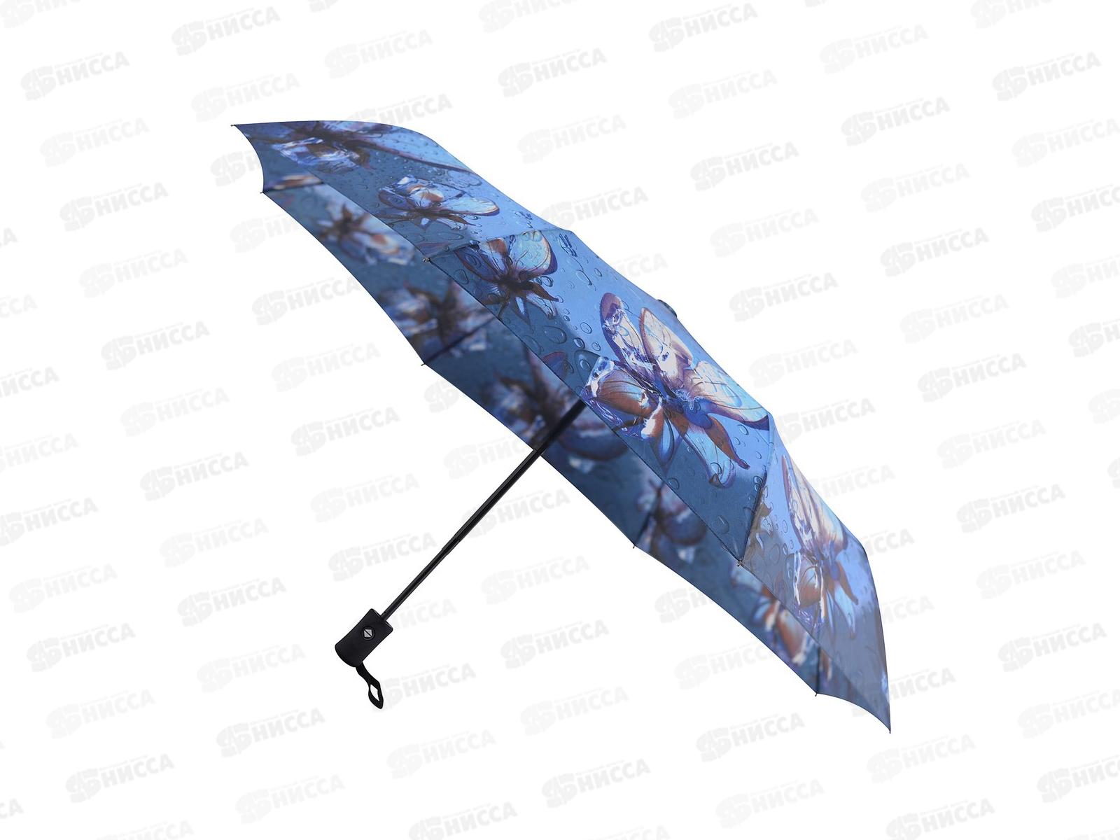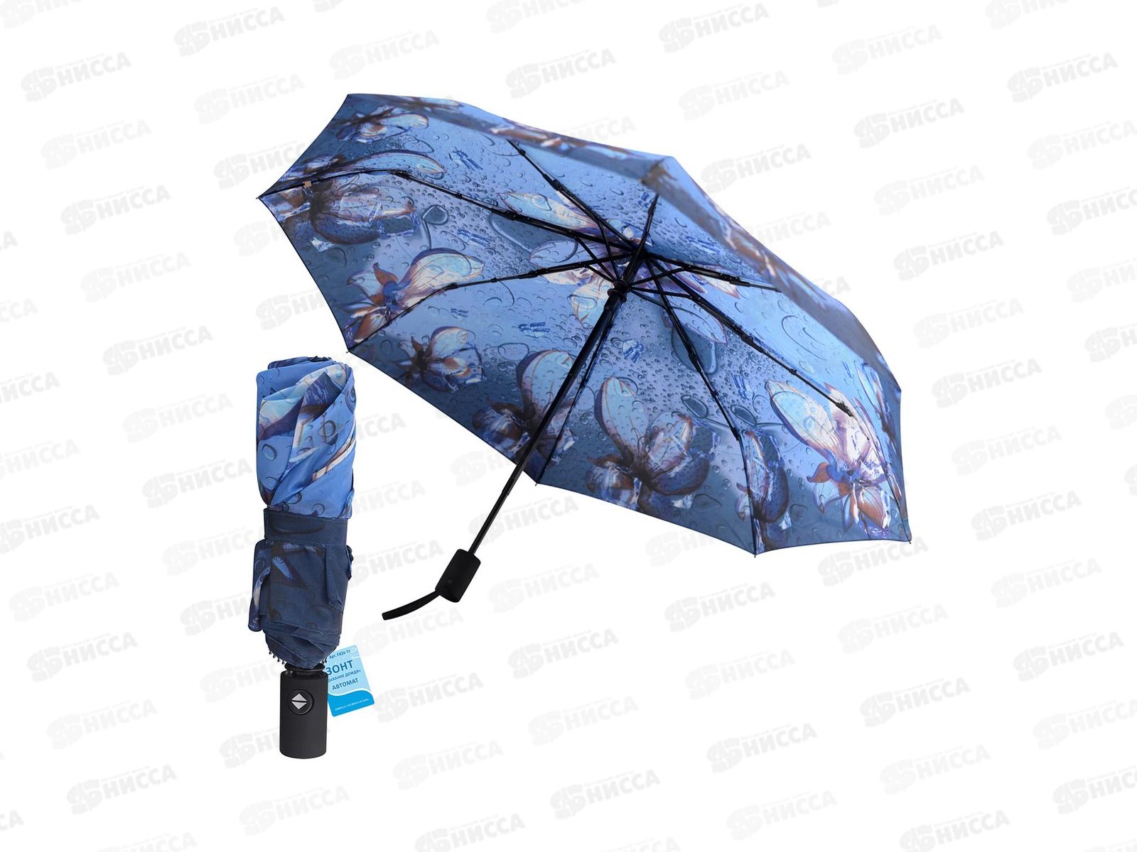 Зонт с цветочным рисунком способен поднять настроение даже в непогоду. Аксессуар открывается и закрывается автоматически. Конструкция устойчива к порывам ветра. Купол изготовлен из полиэстера и металла, ручка из пластмассы. Диаметр купола 98 см.