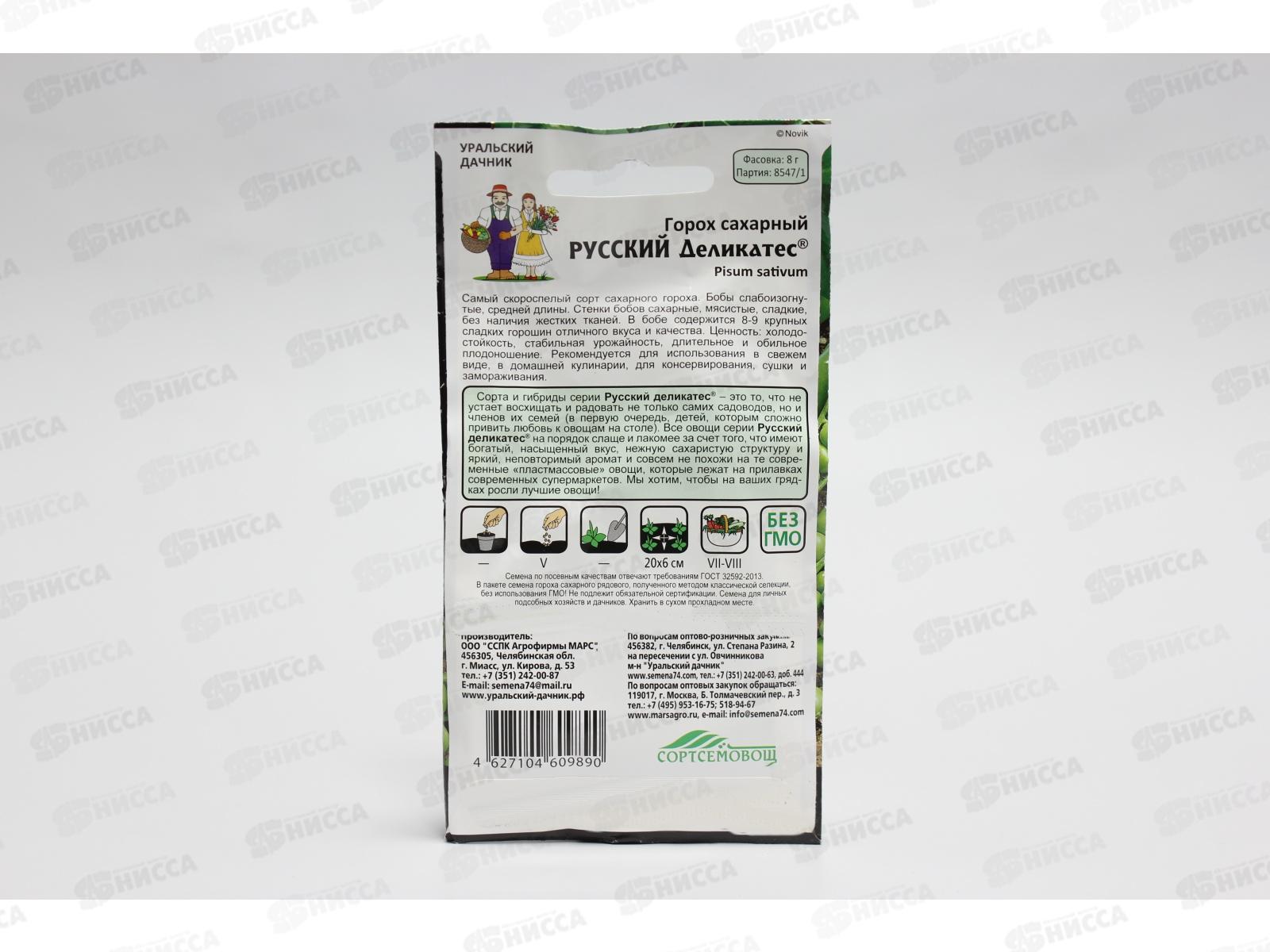 Самый скороспелый сорт сахарного гороха. Бобы слабоизогнутые, средней длины. Стенки бобов сахарные, мясистые, сладкие, без наличия жестких тканей. В бобе содержится 8-9 крупных, сладких горошин отличного вкуса и качества. кулинарии, консервирования, сушки и замораживания. Ценность сорта: холодостойкость, стабильная урожайность, длительное и обильное плодоношение. Рекомендуется для использования в свежем виде, в домашней. Сорта и гибриды серии Русский деликатес – это то, что не устает восхищать и радовать не только самих садоводов, но и членов их семей (в первую очередь, детей, которым сложно привить любовь к овощам на столе). Все овощи серии Русский деликатес на порядок слаще и лакомее за счет того, что имеют богатый, насыщенный вкус, нежную сахаристую структуру и яркий, неповторимый аромат и совсем не похожи на те современные «пластмассовые» овощи, которые лежат на прилавках современных супермаркетов. Мы хотим, чтобы на ваших грядках росли лучшие овощи!