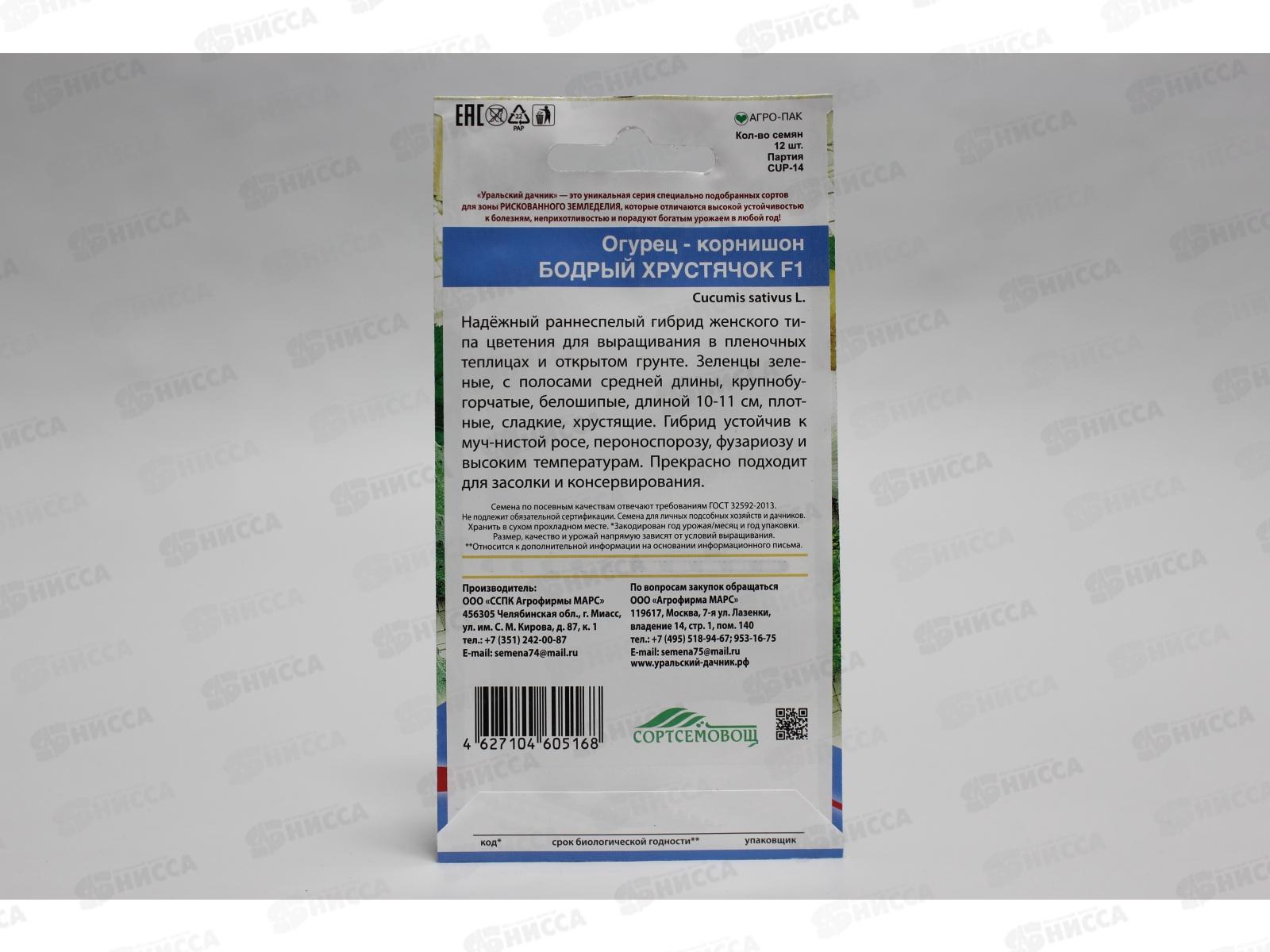 Огурец Бодрый Хрустячок F1 корнишон Евро *10 УрД