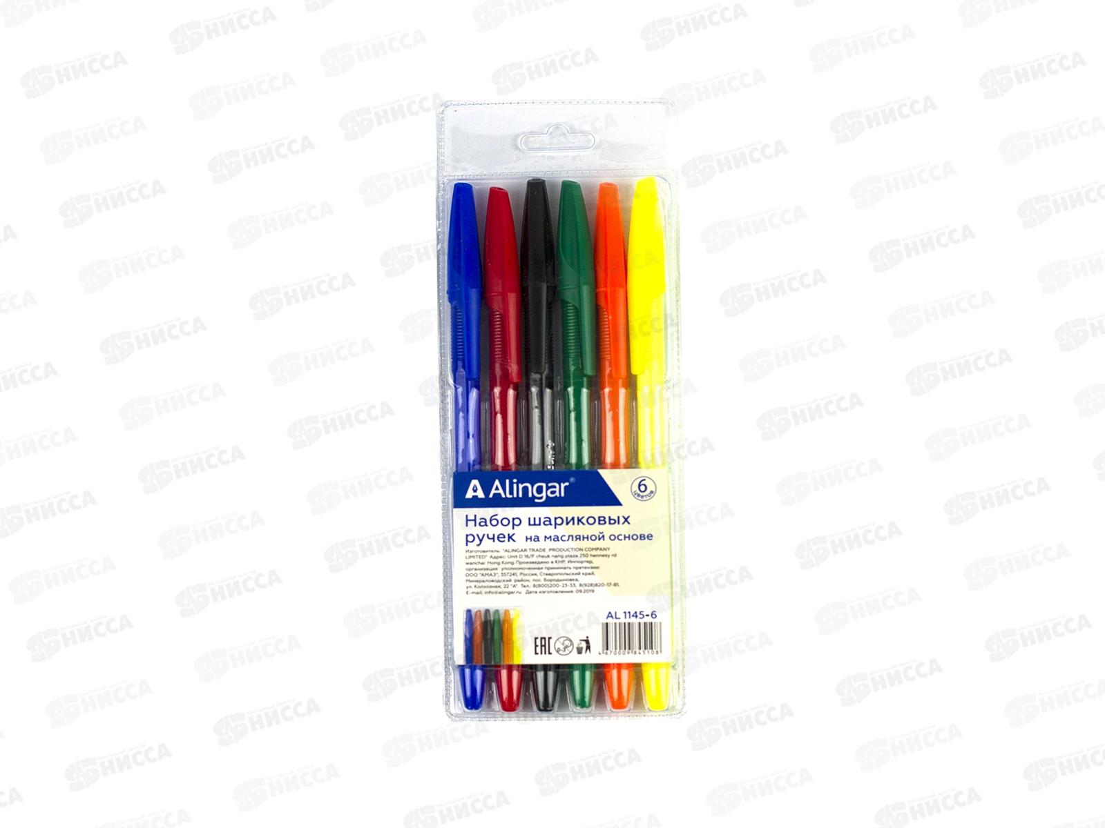 Ручки шариковые Alingar 6 цветов, 1,0мм, цветной пластиковый корпус AL1145-6