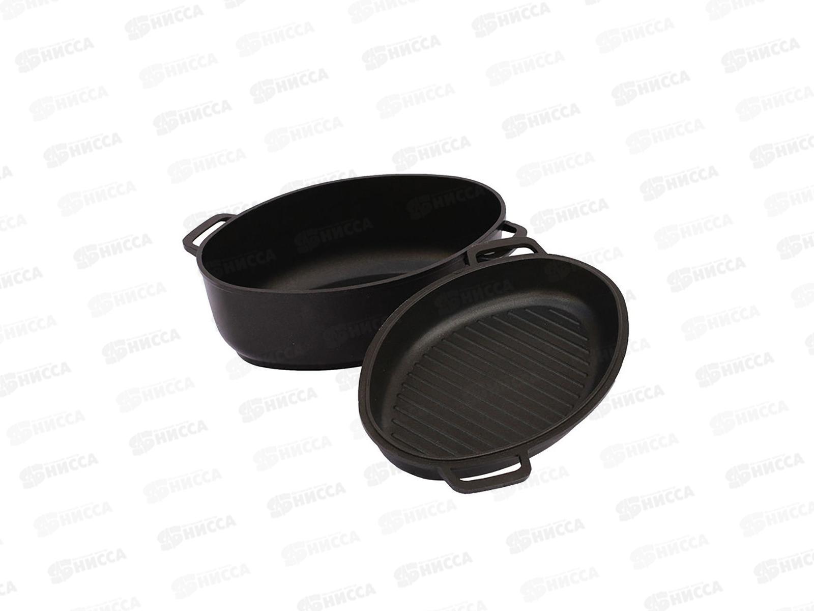 Гусятница 4л Г401П алюминиевая утолщенное дно+крышка сковорода-гриль антиприганое покрытие *6