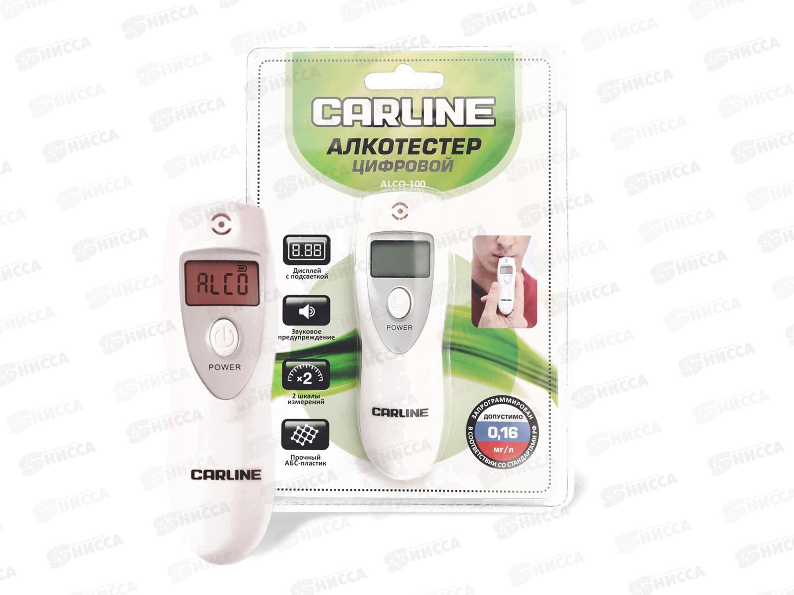 Классическая модель алкотестера без мундштука. Имеет полупроводниковый датчик, который определяет количество алкоголя в парах выдыхаемого воздуха. Датчик реагирует на пары спирта, попадающие на него, и выводит результат на экран прибора. Алкотестер Carline ALCO-100 настроен на нормы Российского законодательства. В случае превышения допустимого содержания алкоголя в крови, прибор издает предупреждающий сигнал. Результаты измерений могут быть выведены на экран в двух величинах – промилле(0/00) и BAC(%). Погрешность измерений прибора ±0,05 промилле. Алкотестер Carline ALCO-100 работает от двух мизинчиковых батареек (тип AAA). Для удобства эксплуатации прибор оснащен ремешком-держателем.