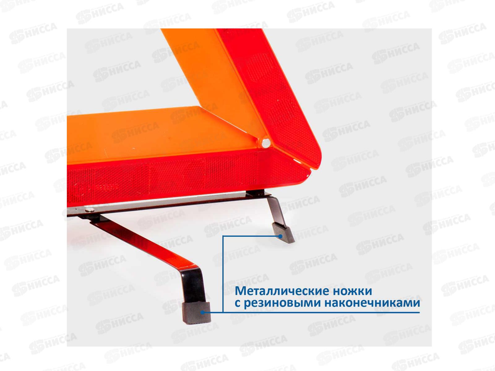 Классическая модель знака аварийной остановки. Каркас знака и флуоресцирующая часть выполнены из прочного пластика, на поверхность которого установлены светоотражатели. Металлические ножки знака выполнены в виде креста с резиновыми наконечниками, что обеспечивает дополнительную устойчивость. Знак аварийной остановки имеет складную конструкцию и не занимает много места в багажнике автомобиля. Модель упакована в фирменный кейс с правилами ПДД об аварийных знаках.