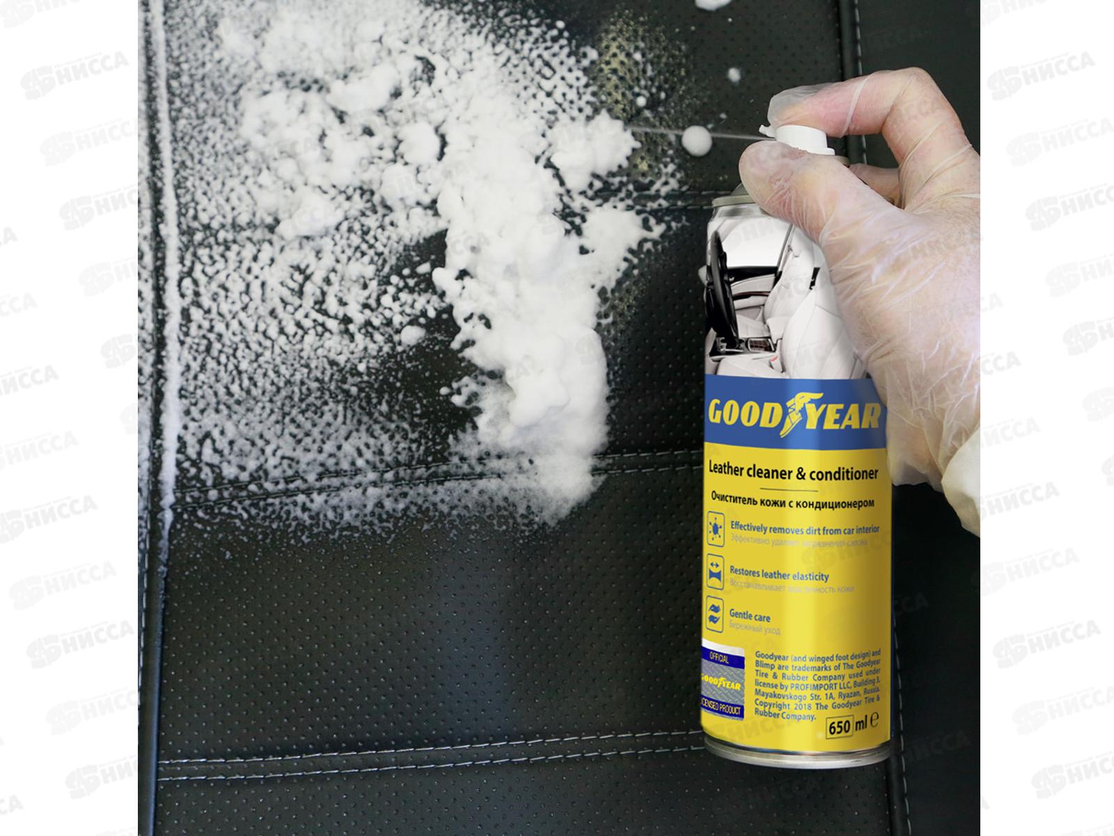 Пенный очиститель кожи от Goodyear позволяет эффективно удалить загрязнения с кожаной обивки кресел автомобиля, домашней и офисной мебели. Может применяться для одежды и других изделий из кожи или дерматина. Благодаря специальной формуле средство от Goodyear создает обильную пену и бережно удаляет загрязнения, ухаживая за предметами из натуральной и искусственной кожи, предохраняет их от растрескивания и позволяет сохранить структуру материала. Не использовать на изделиях из алькантары, замши и нубука. Состав: вода >30%, пропан-бутан 15-30%, силиконовая эмульсия 5-15%, ПАВ <5%, воск <5%, функциональные добавки <5%, ароматизатор <5%, консервант<5%, ингибитор коррозии <5%.